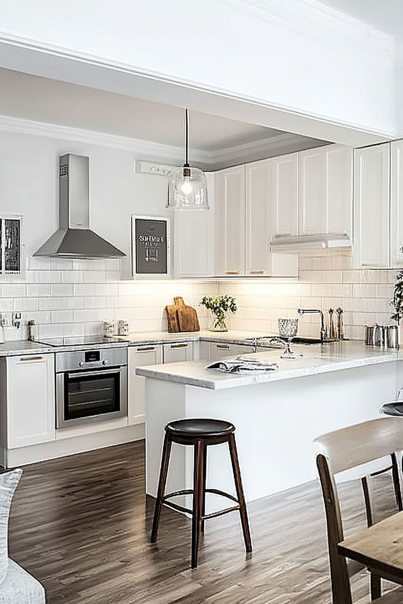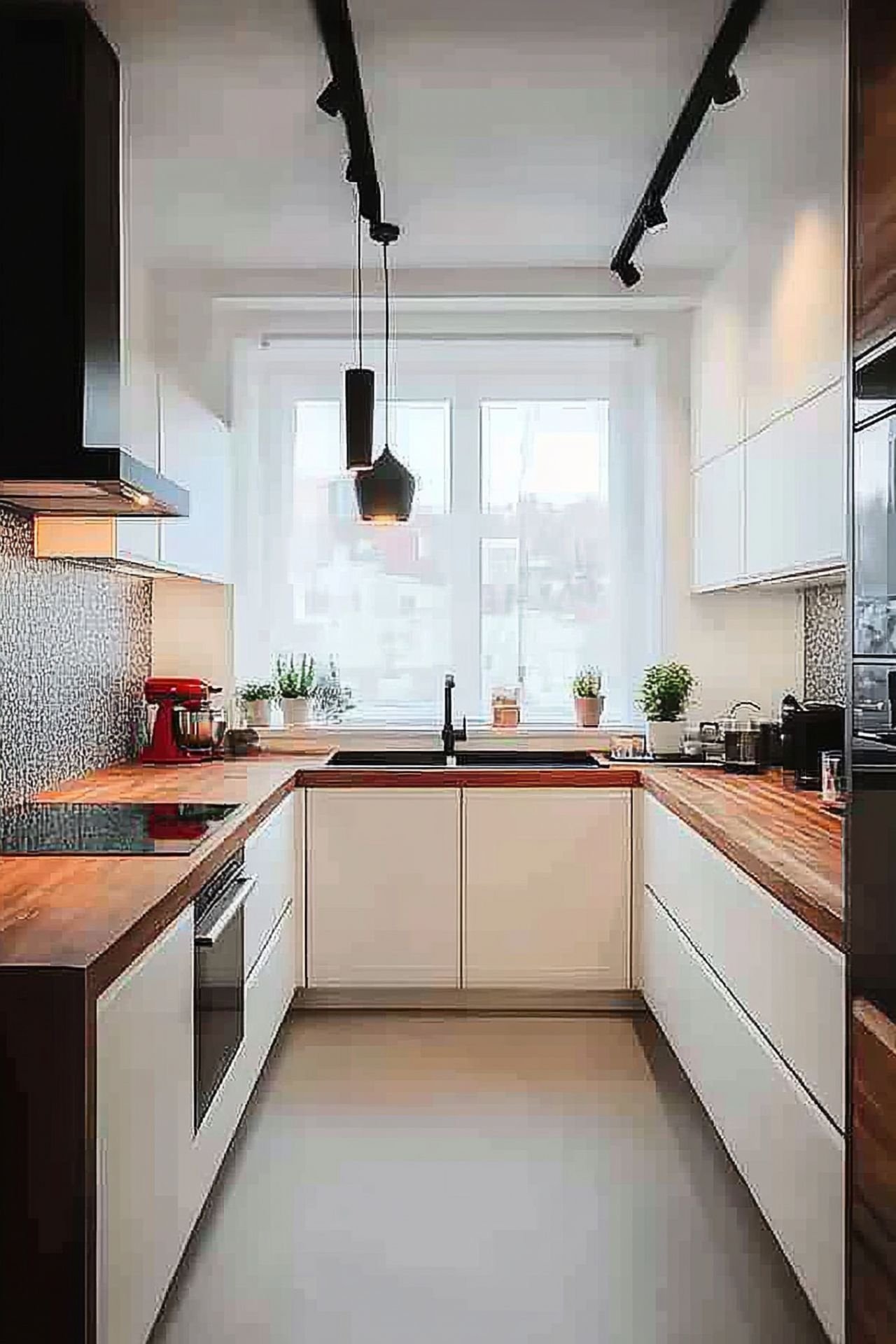 Small U-shaped kitchens need smart planning. Use space-saving techniques and compact appliances. Light colors and minimal decor can also make it seem larger.