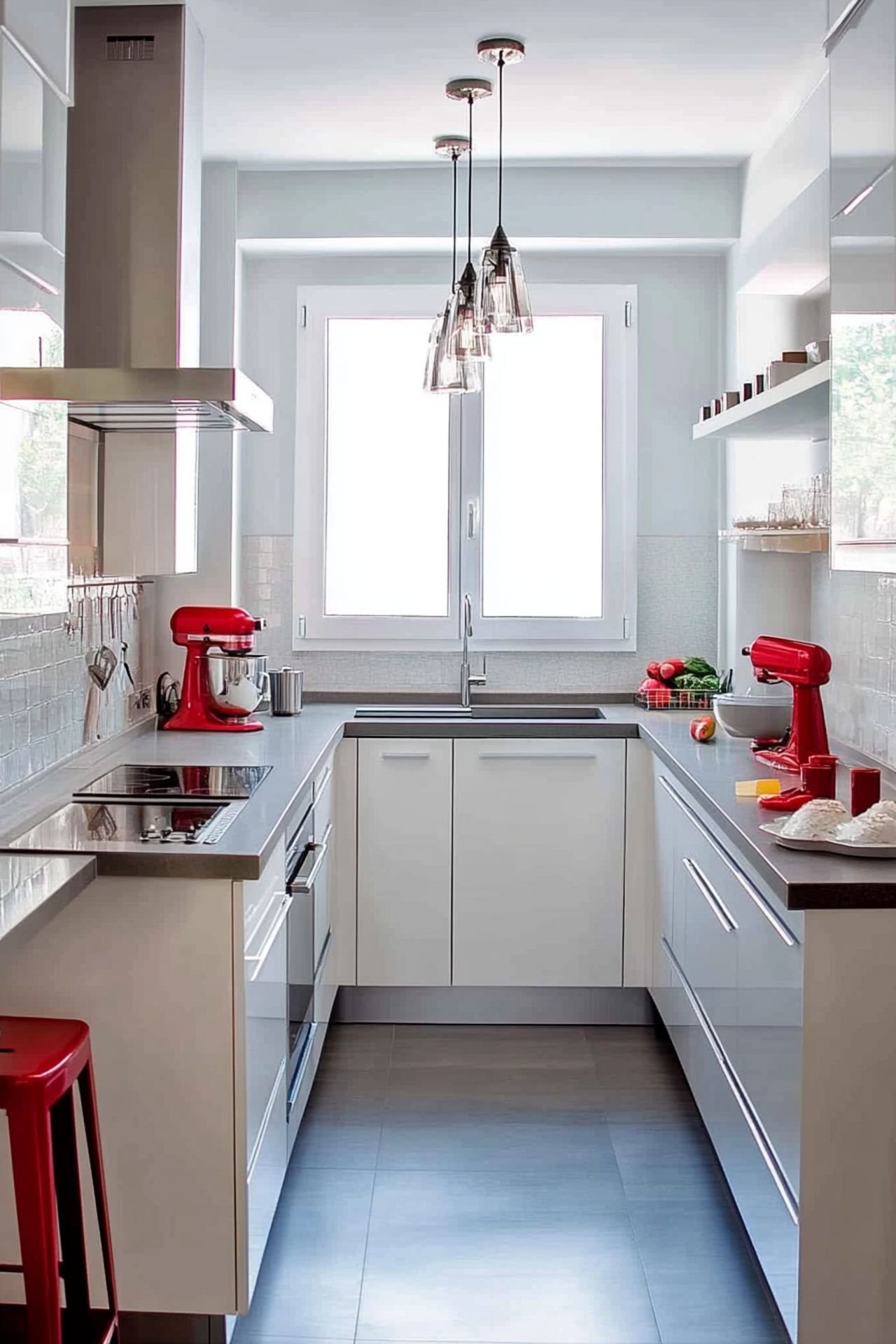 In small U-shaped kitchens, every inch matters. To make the most of space, use smart tricks and visual illusions. Even with less than 100 square feet, a well-designed kitchen can be efficient.