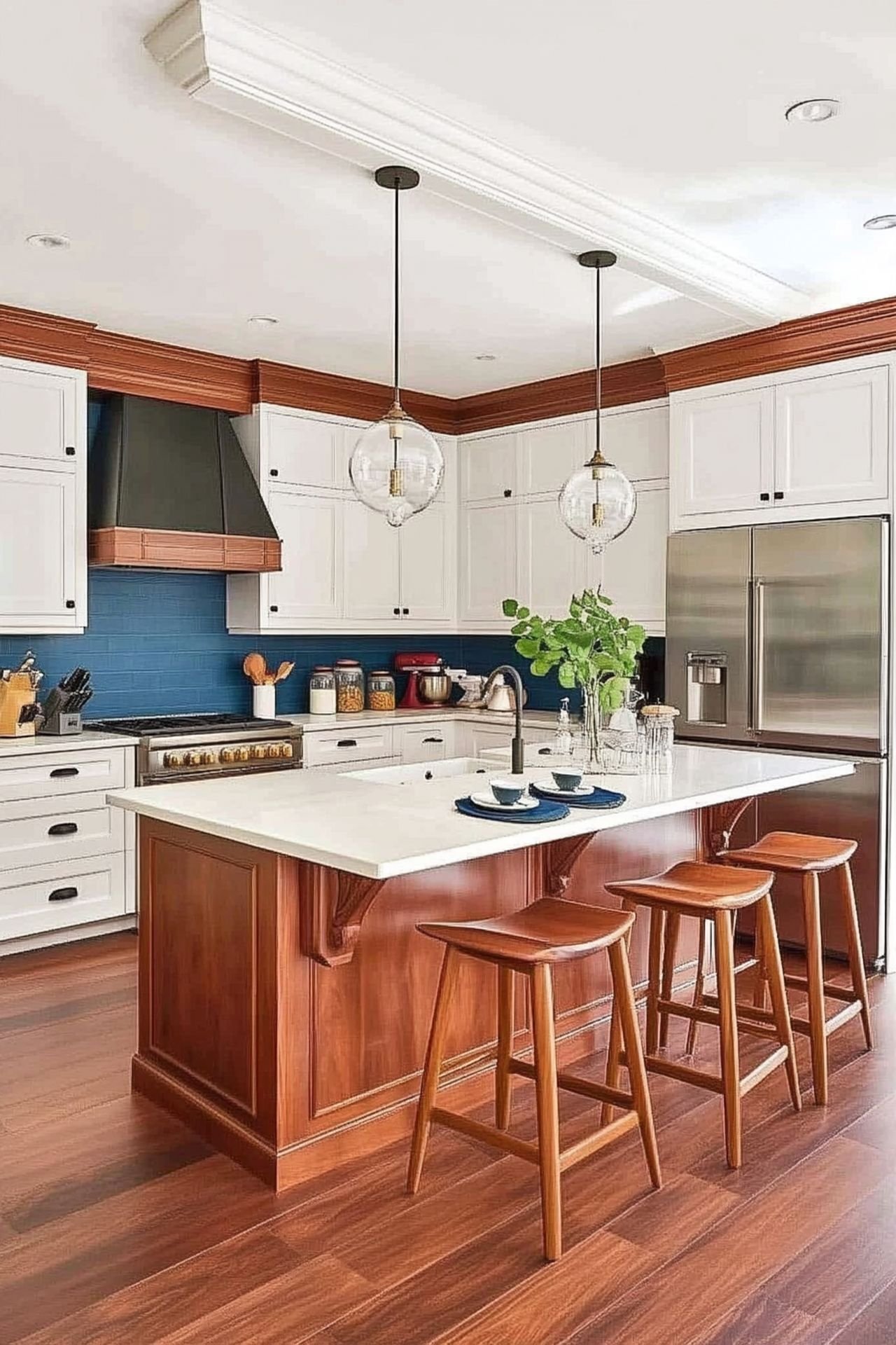 Some top ideas for island integration include wraparound seating, open shelving, and built-in appliances. These features bring people together and make the kitchen a fun place to hang out. Plus, unique pendant lights and bold accent colors add personality and warmth.