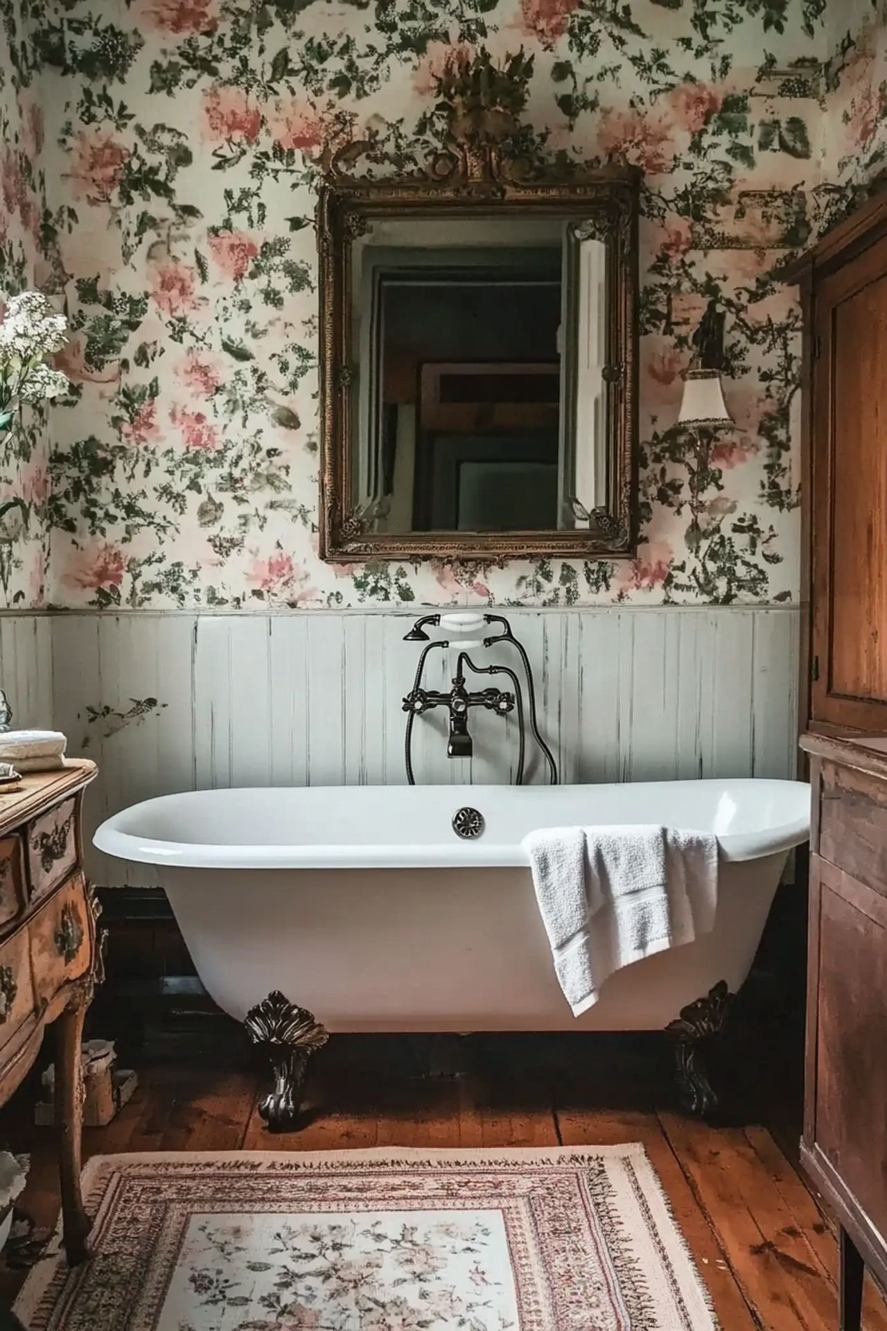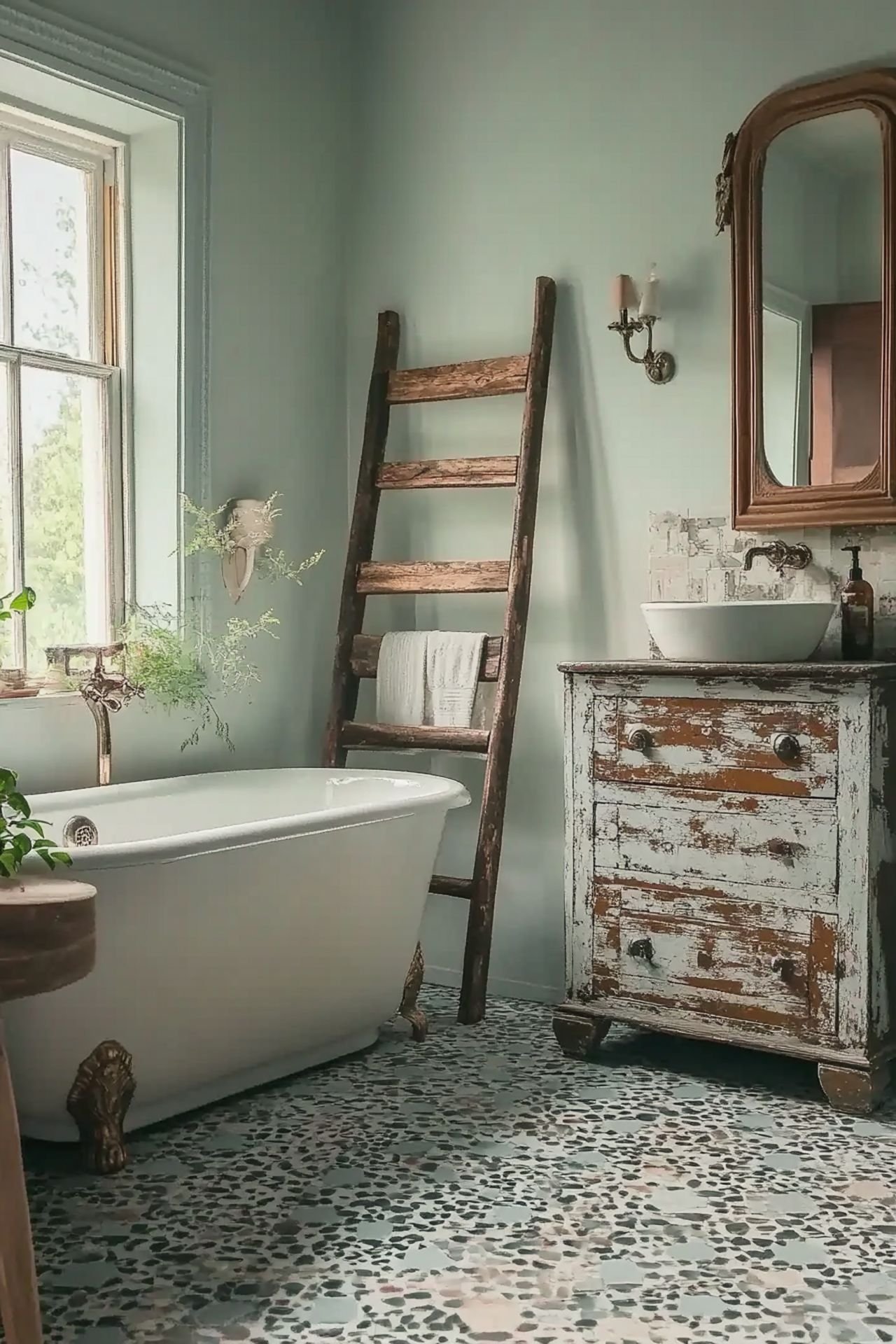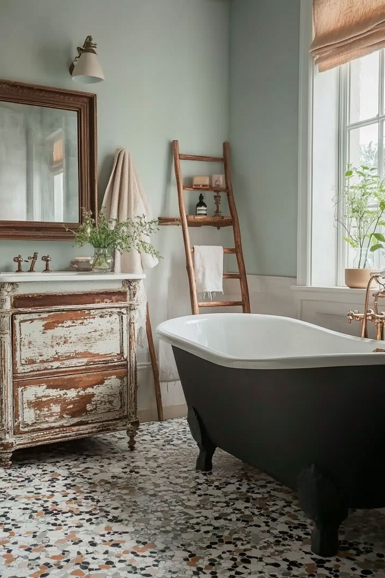 Vintage mirrors and wall art add personality. They make your bathroom unique and inviting.