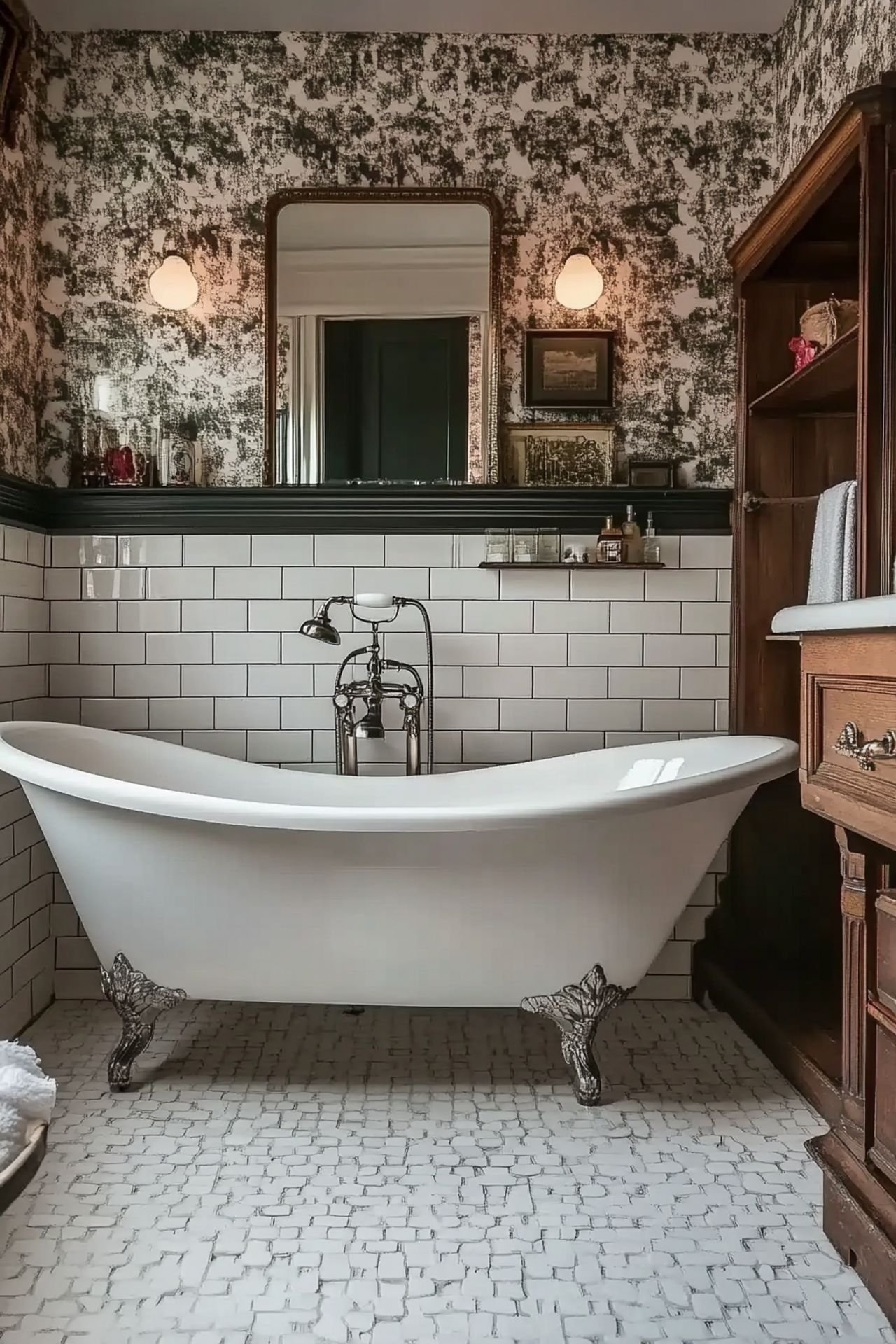 Victorian bathrooms also feature clawfoot tubs and freestanding bath mixers. These add a luxurious touch. Pair them with traditional Victorian storage solutions like ornate cabinets or shelves. This way, your bathroom will reflect the Victorian era’s style and sophistication.