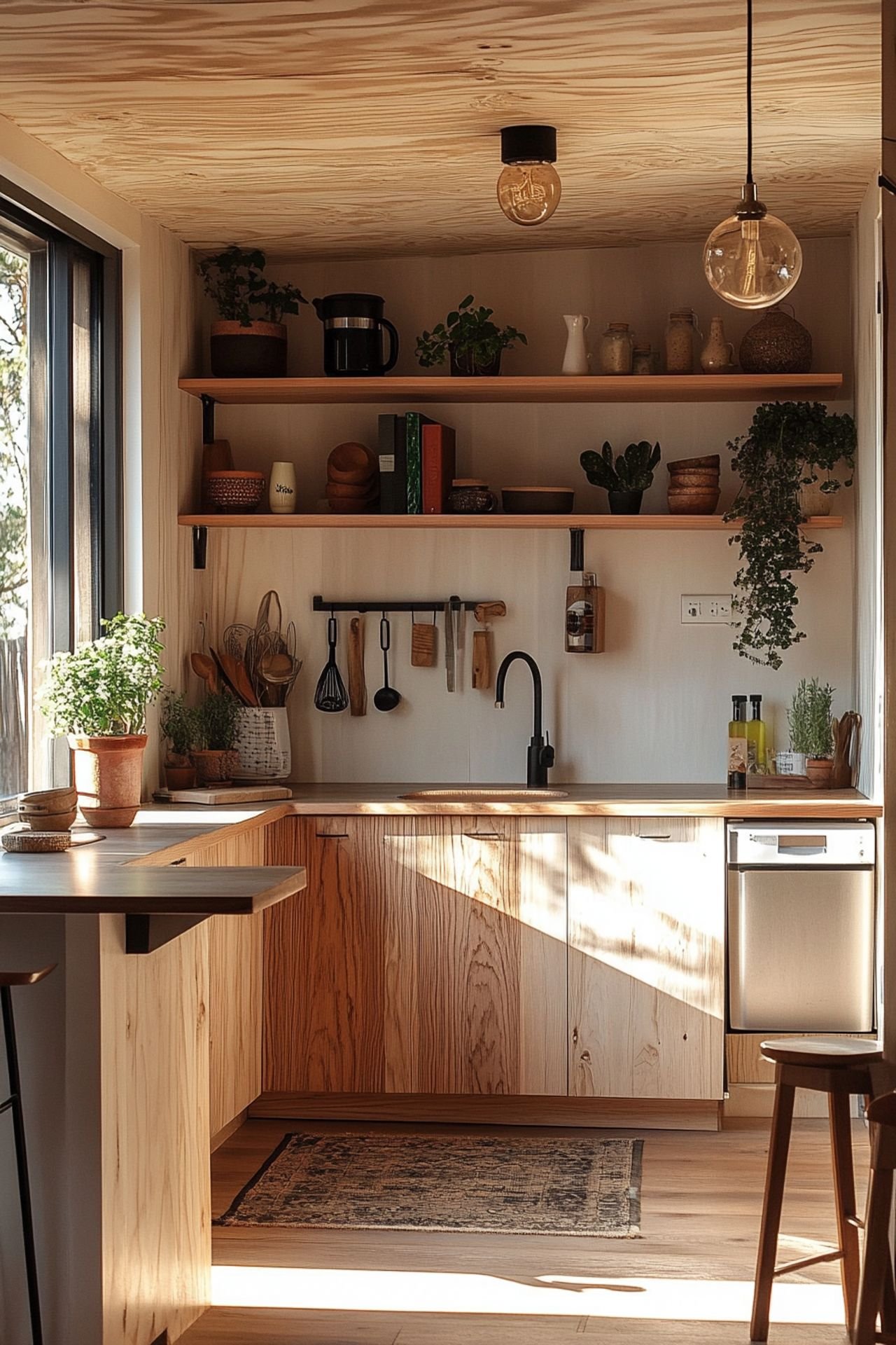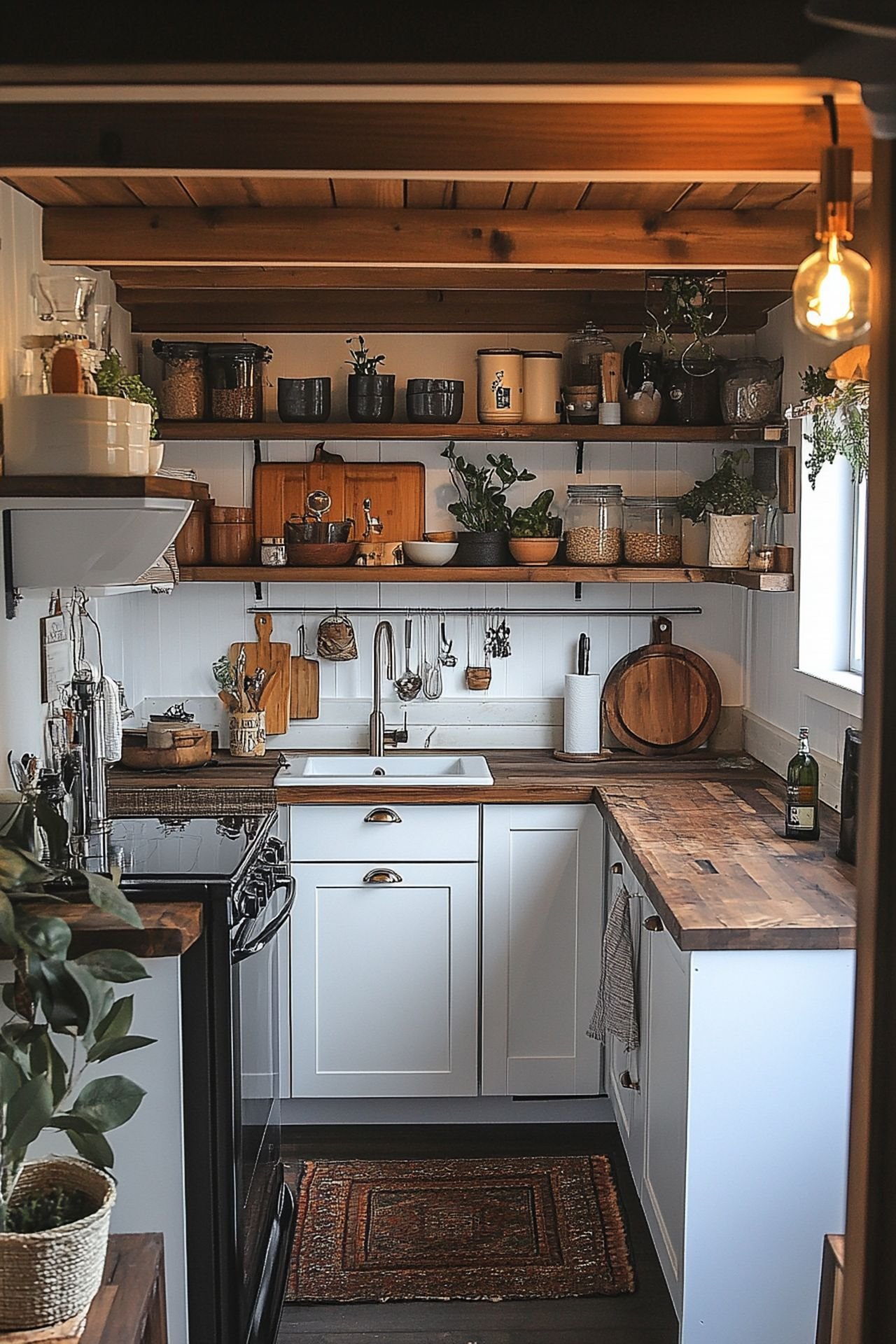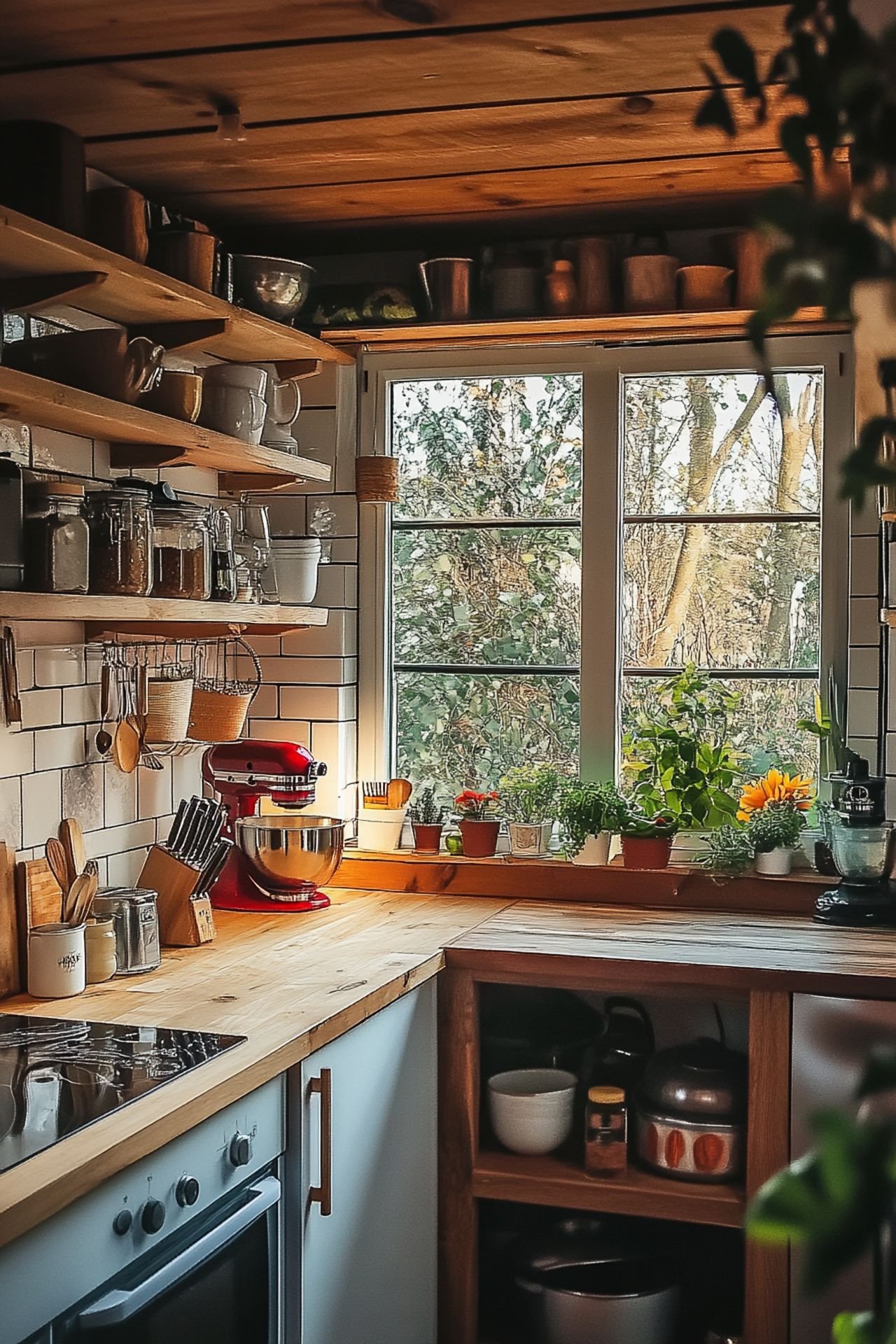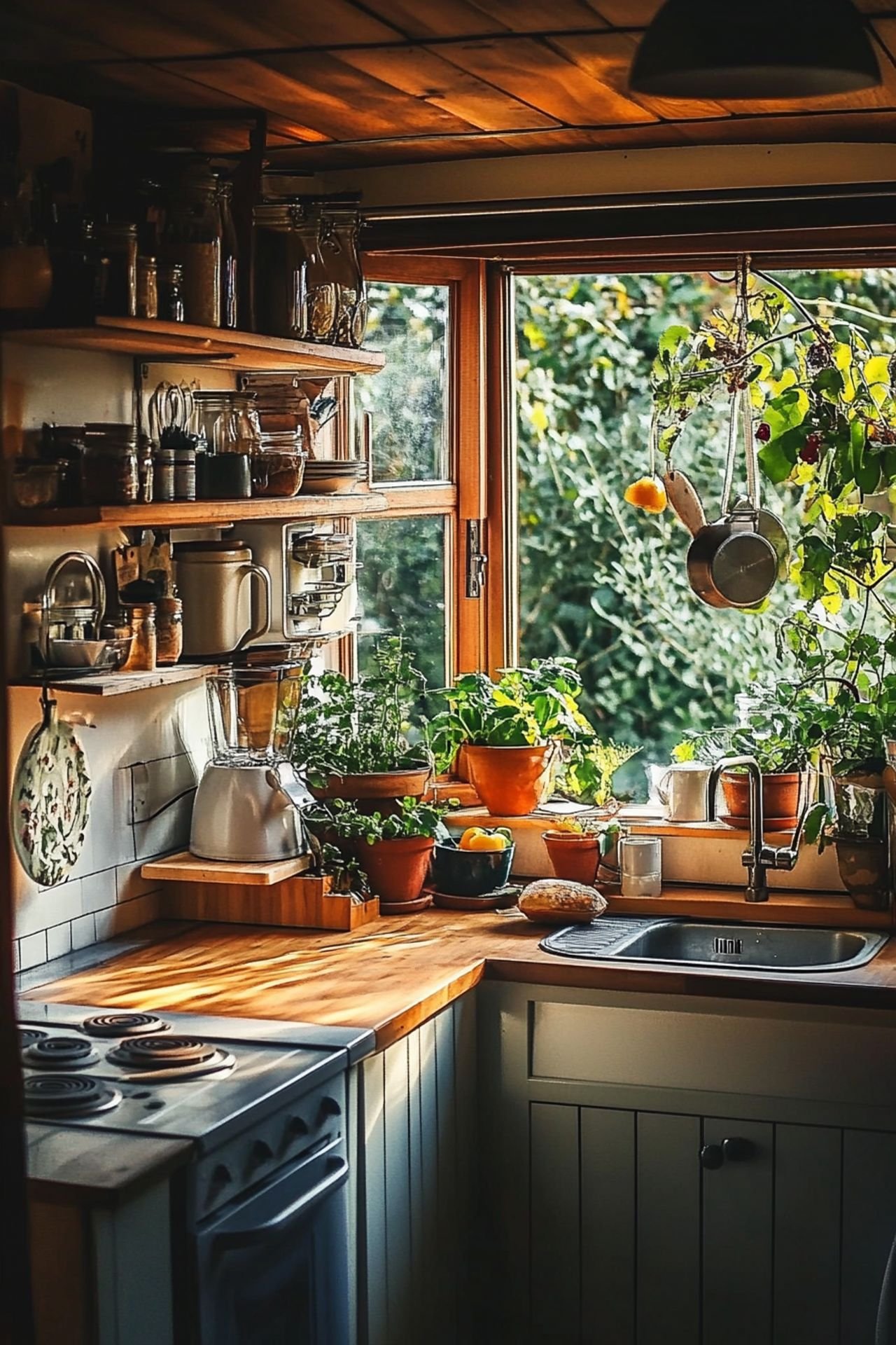 In a Micro Kitchen Ideas setup, every inch matters. A spice rack or a hanging fruit basket adds charm and saves space. Other DIY ideas include: