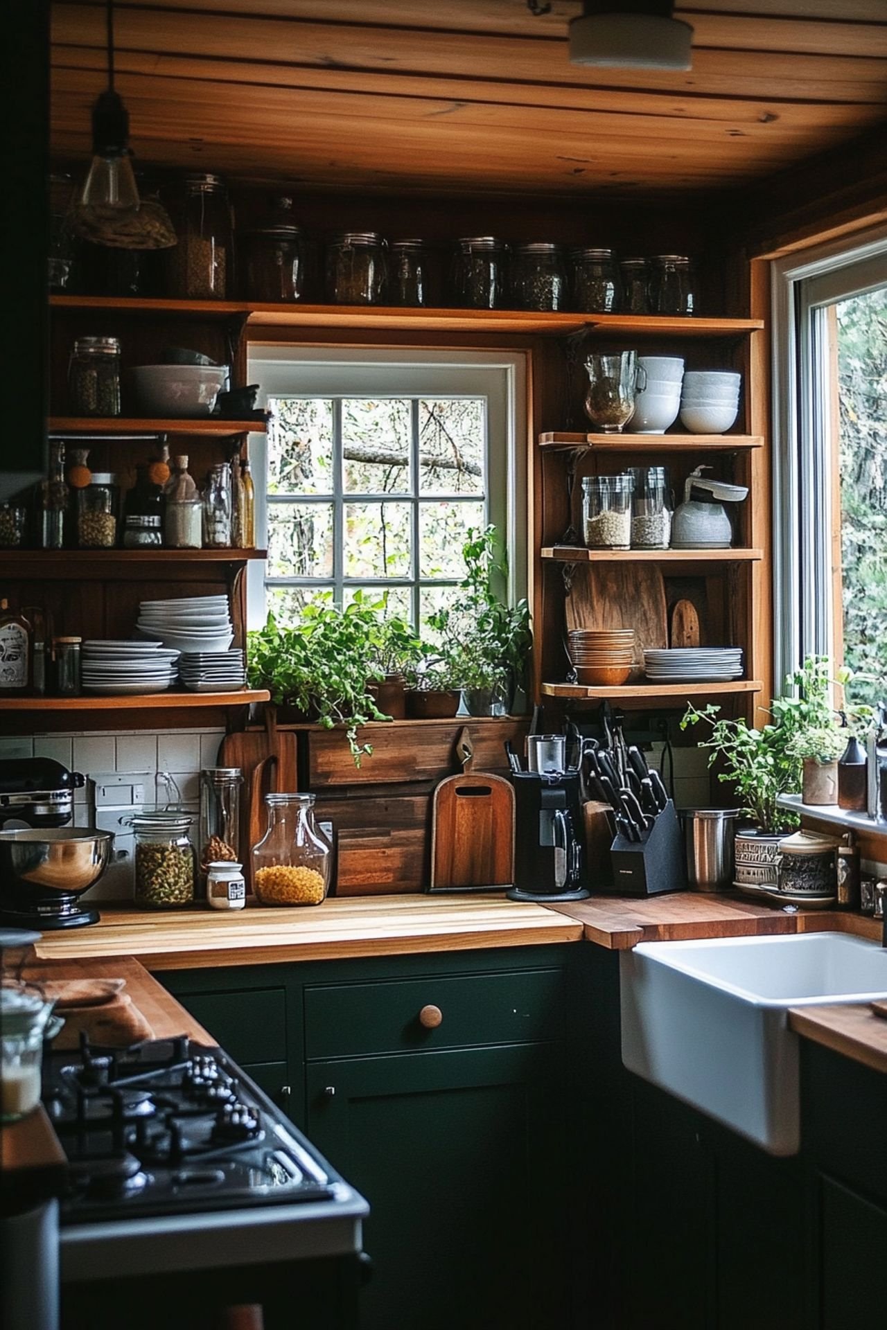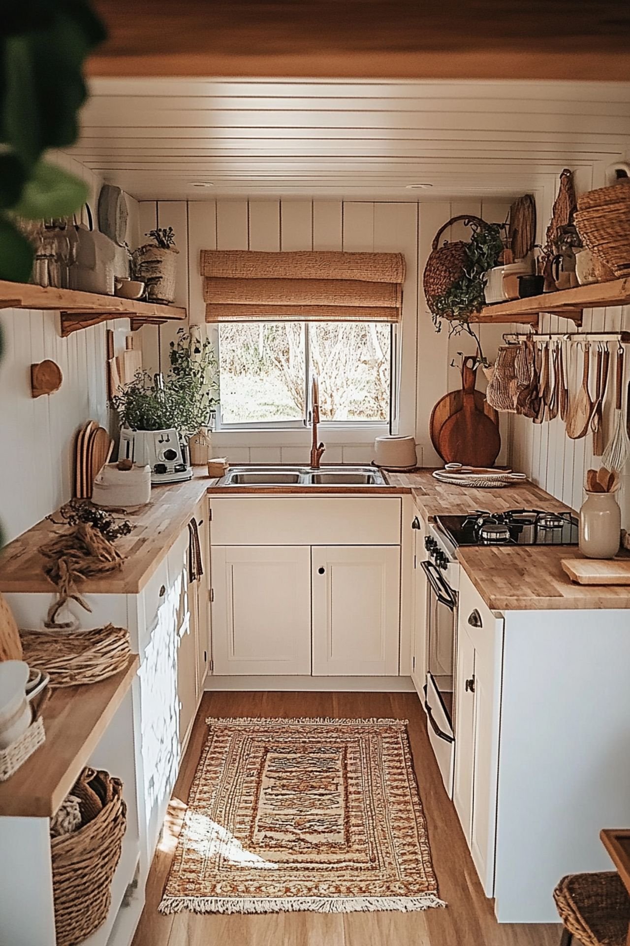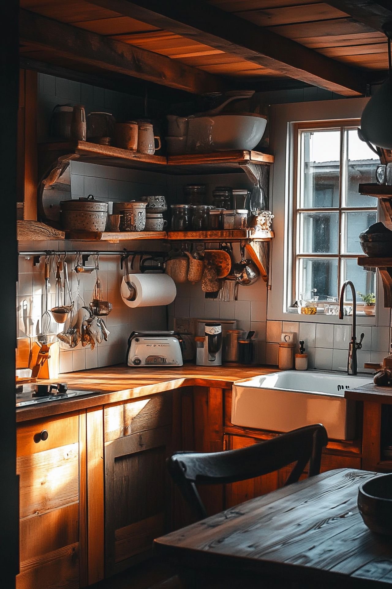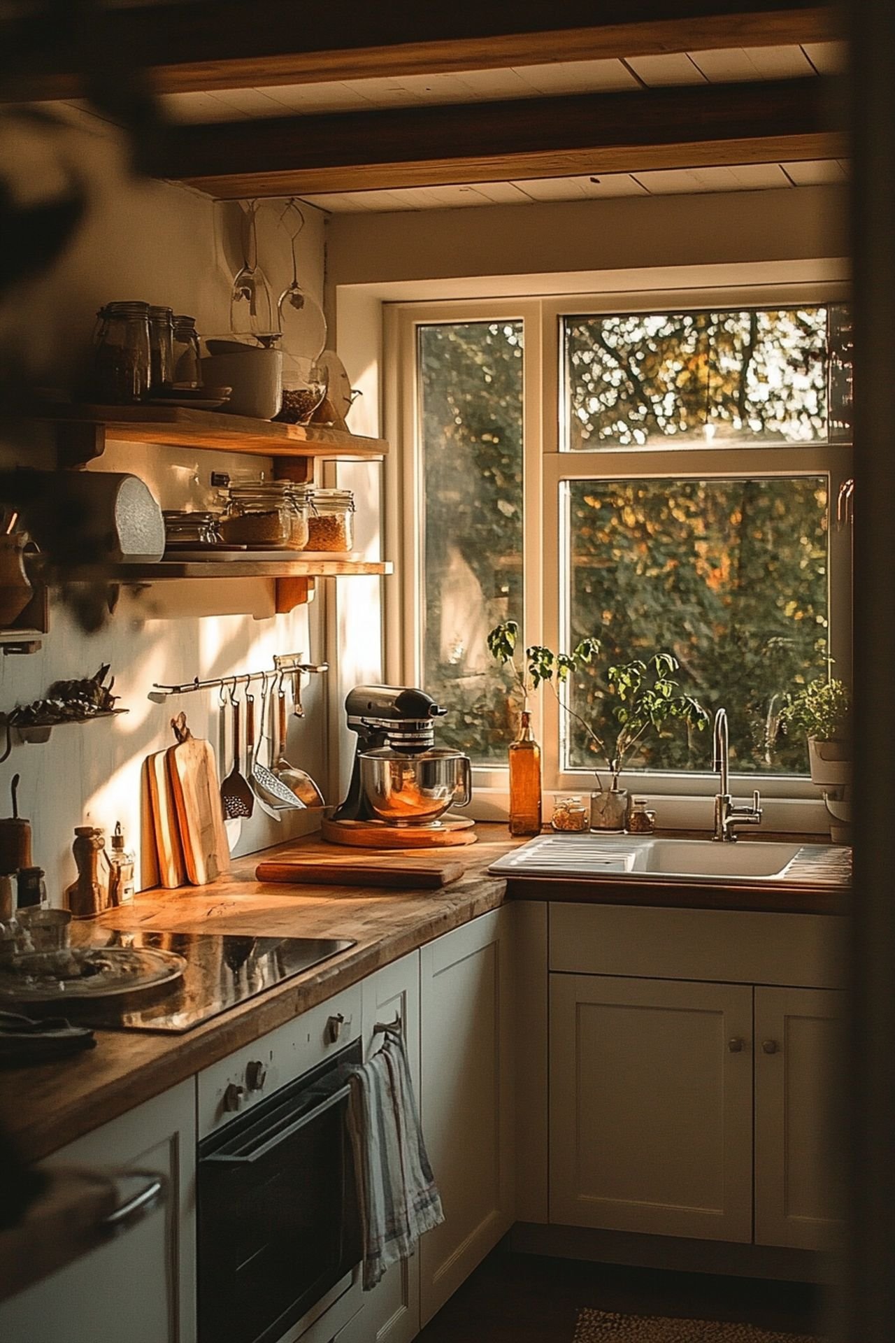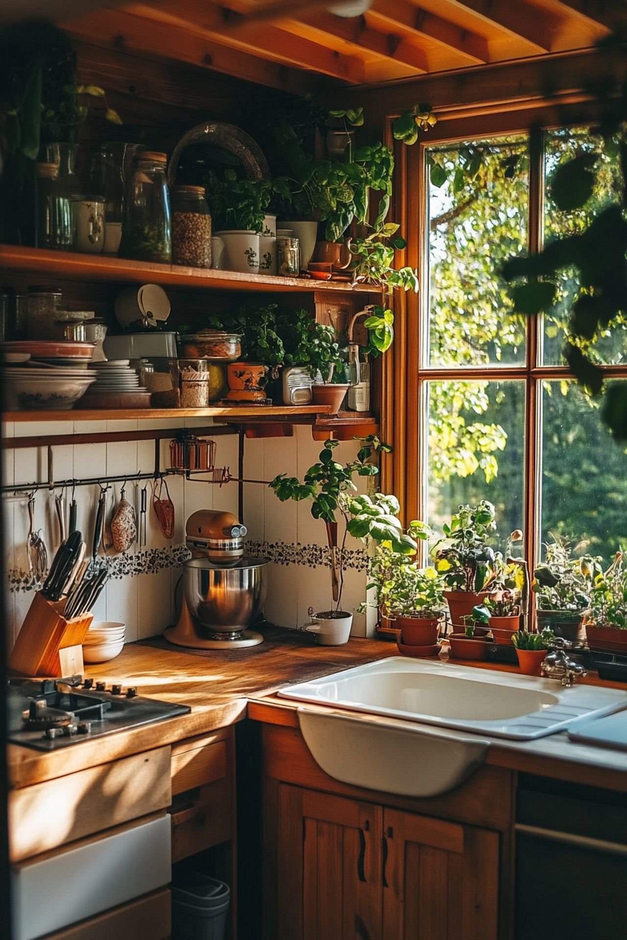 In a Micro Kitchen Ideas setup, every inch matters. A spice rack or a hanging fruit basket adds charm and saves space. Other DIY ideas include: