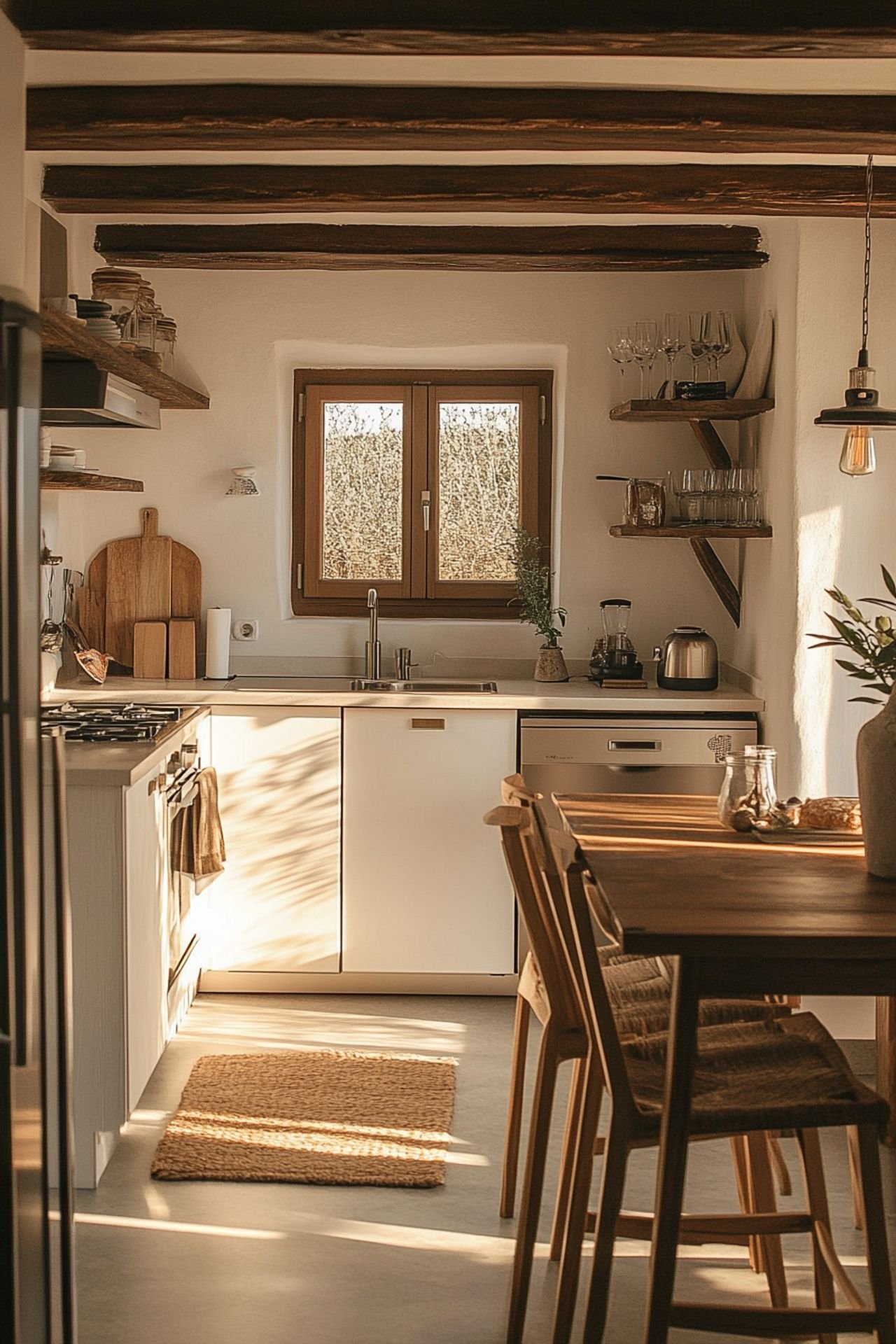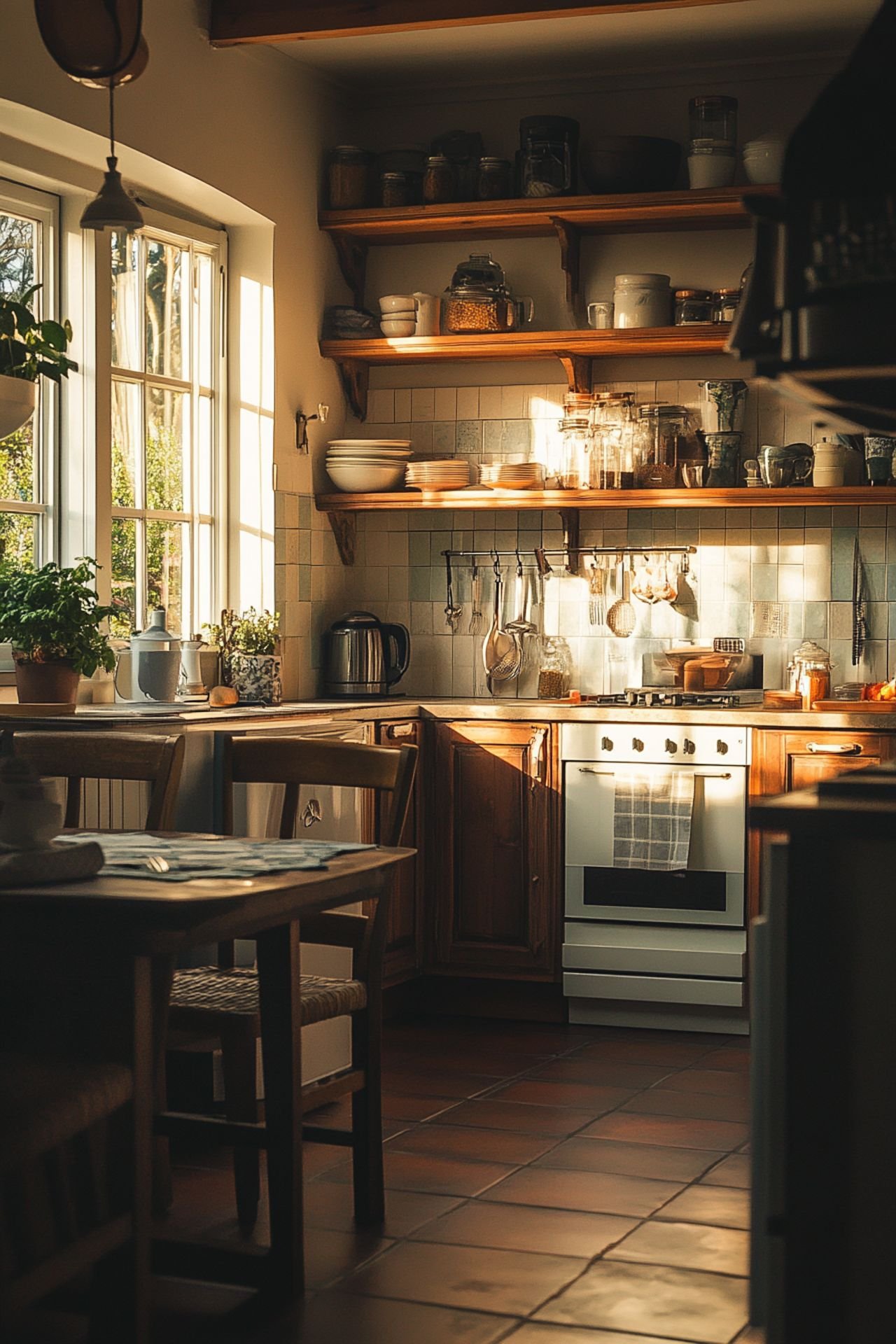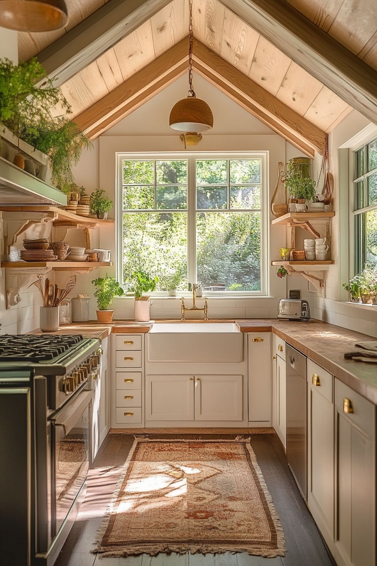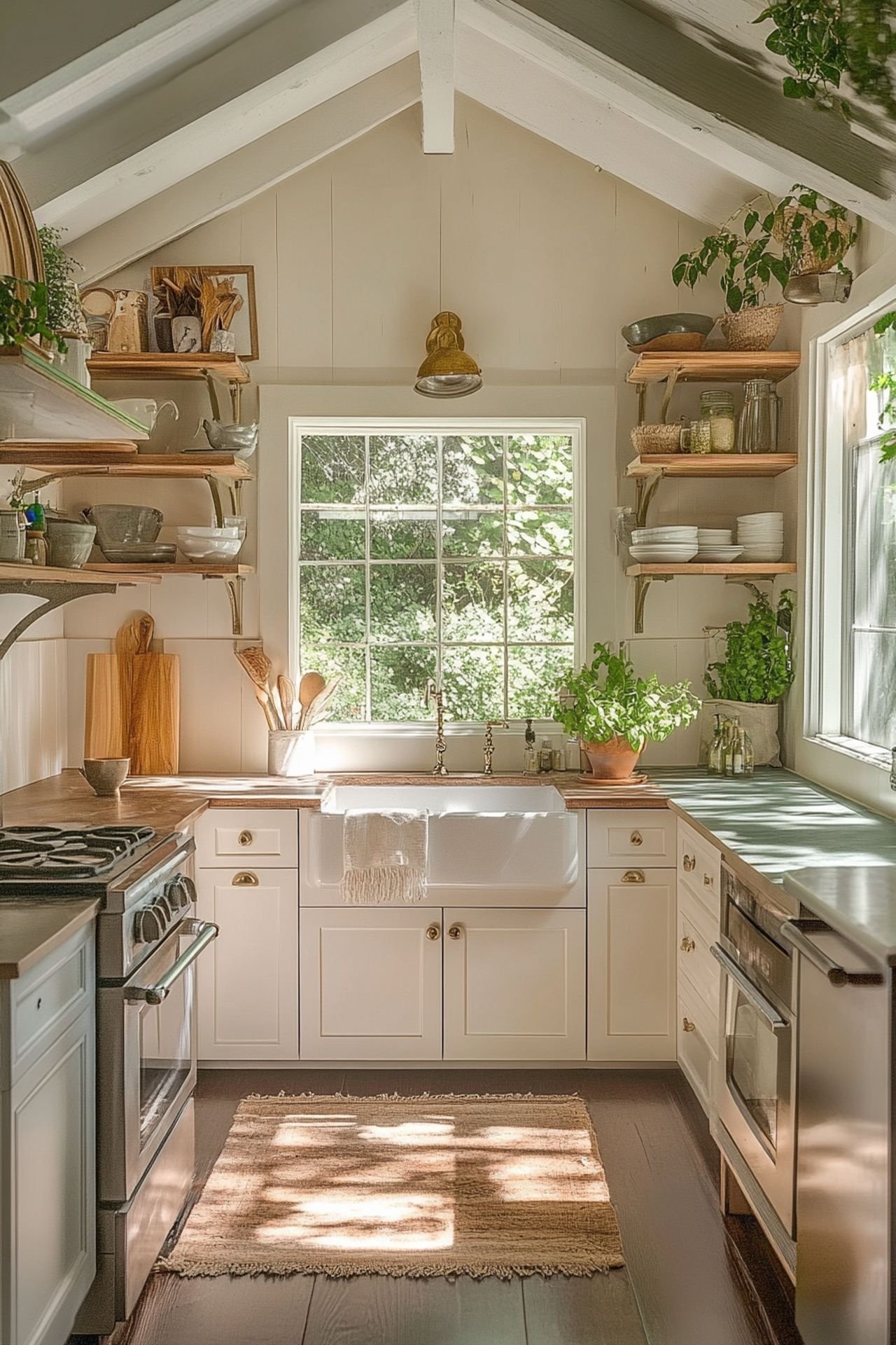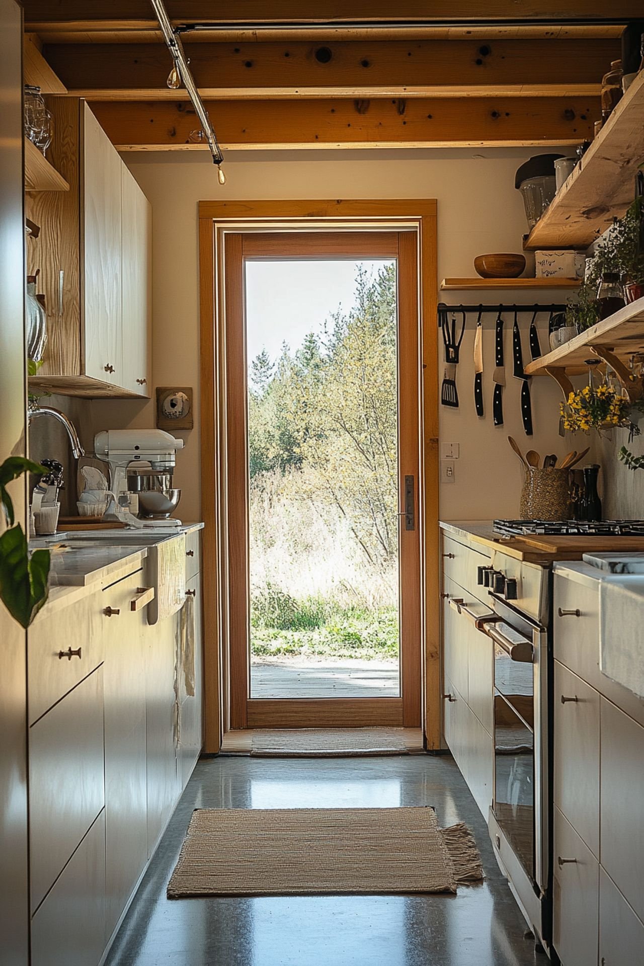 Consider a kitchen cart or mobile island for less clutter. A curved island improves flow. Add a patterned floor runner and Roman shades for personality. These elements make your kitchen unique and functional.