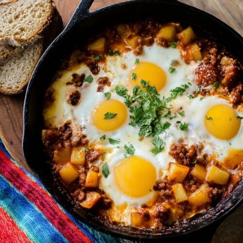This baked eggs with chorizo and potatoes recipe is a flavorful one-skillet dinner recipe perfect for hectic weeknights or lazy brunches. Packed with hearty ingredients and bold spices, it checks all the boxes for comfort food, easy recipes, and satisfying meals in one pot.