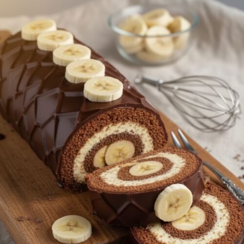 This Banana Chocolate Dream Roll is an easy dessert recipe that delivers bakery-quality results with minimal effort. A light and fluffy sponge cake wraps around a creamy banana filling, all topped with a rich chocolate ganache. Perfect for impressing guests or treating your family to something special, this decadent dessert comes together in under an hour using simple ingredients. Whether you’re a seasoned baker or a beginner, this sweet treat is sure to become a favorite in your collection.