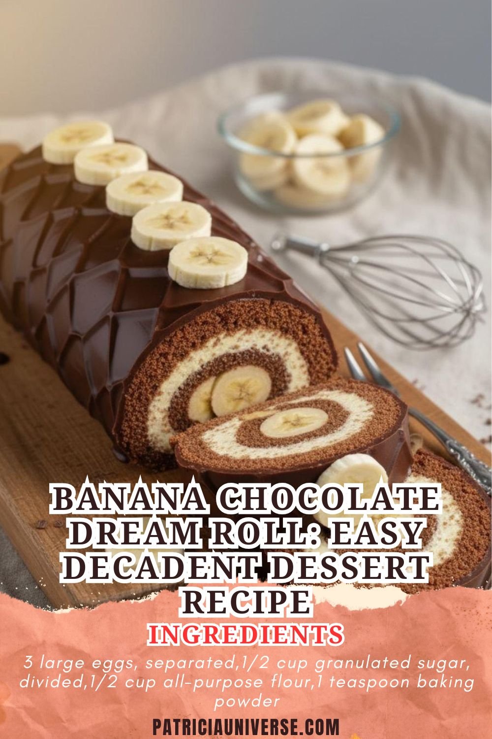 There’s something magical about rolling up a beautiful cake filled with creamy goodness. When I first created this Banana Chocolate Dream Roll for a family gathering, I knew I had stumbled upon something truly special. The combination of ripe bananas, fluffy whipped cream, and silky chocolate ganache creates a decadent dessert that looks like it came from a high-end bakery. But here’s the secret — it’s actually an easy dessert recipe that anyone can master. At Patricia Universe, we believe that creating stunning sweet treats shouldn’t require a culinary degree, just a little bit of love and the right guidance.