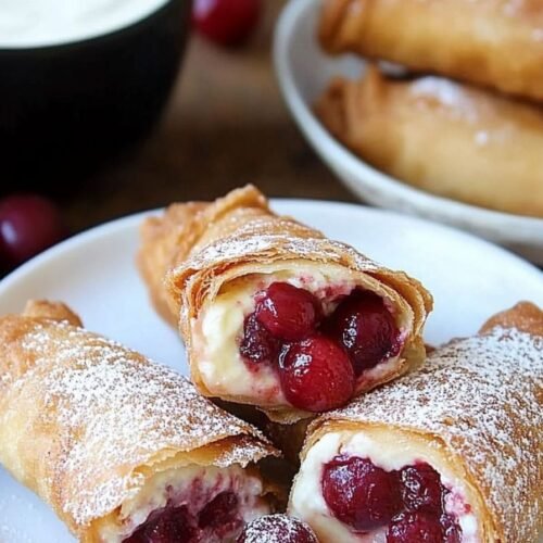 Cherry Cream Cheese Egg Rolls are a delightful dessert that combines crispy, golden-brown wrappers with a luscious and creamy cherry filling. They’re easy to make, incredibly satisfying, and perfect for any occasion. Whether you’re hosting a party, craving a quick sweet snack, or looking for a unique dessert idea, these egg rolls are a must-try!