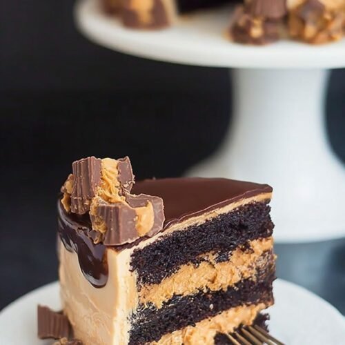To make slicing easier, refrigerate the cake for 30 minutes before cutting. Want a flavor twist? Swap the peanut butter cups for chocolate-covered pretzels or add a bit of espresso powder to the batter for depth. And yes, this cake freezes beautifully—just be sure to wrap it tightly in plastic wrap and foil.