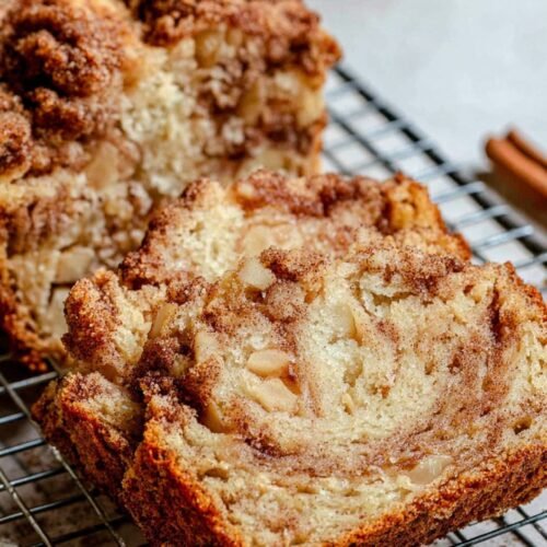 For best results, use a tart apple like Granny Smith to balance the sweetness of the cinnamon sugar. Don’t overmix the batter—just enough to combine. Want an extra crunch? Add chopped walnuts or pecans. Store leftovers tightly wrapped at room temperature for up to three days or freeze for up to two months.