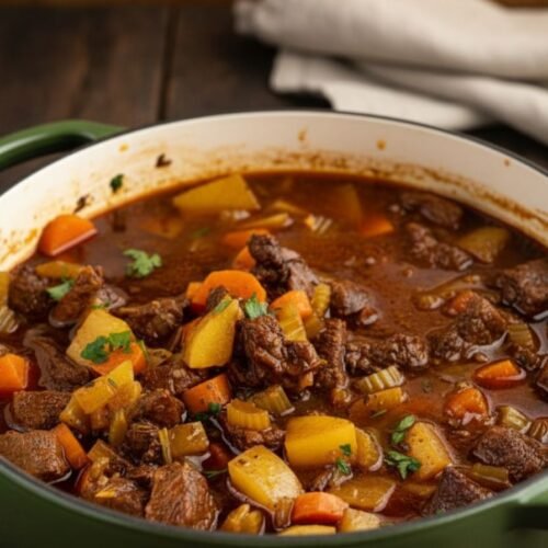 Cozy, hearty, and deeply flavorful, this Classic Stove Top Beef Stew Recipe for Cozy Dinners is the ultimate one-pot comfort food. Made with tender chunks of beef, garden veggies, and a rich, savory broth, this recipe for dinner is guaranteed to warm you up from the inside out. It’s an easy dinner recipe that feels like a warm hug, perfect for simple meals with the family. The meat becomes unbelievably tender and juicy as it slow-simmers on the stove, while the potatoes and carrots soak up all the delicious flavor. Whether you need an easy recipe for dinner on a busy weeknight or a satisfying dish for a lazy Sunday, this easy comfort food recipe is a classic that never fails. Plus, it’s a wonderful make-ahead meal as the flavors get even better the next day.
