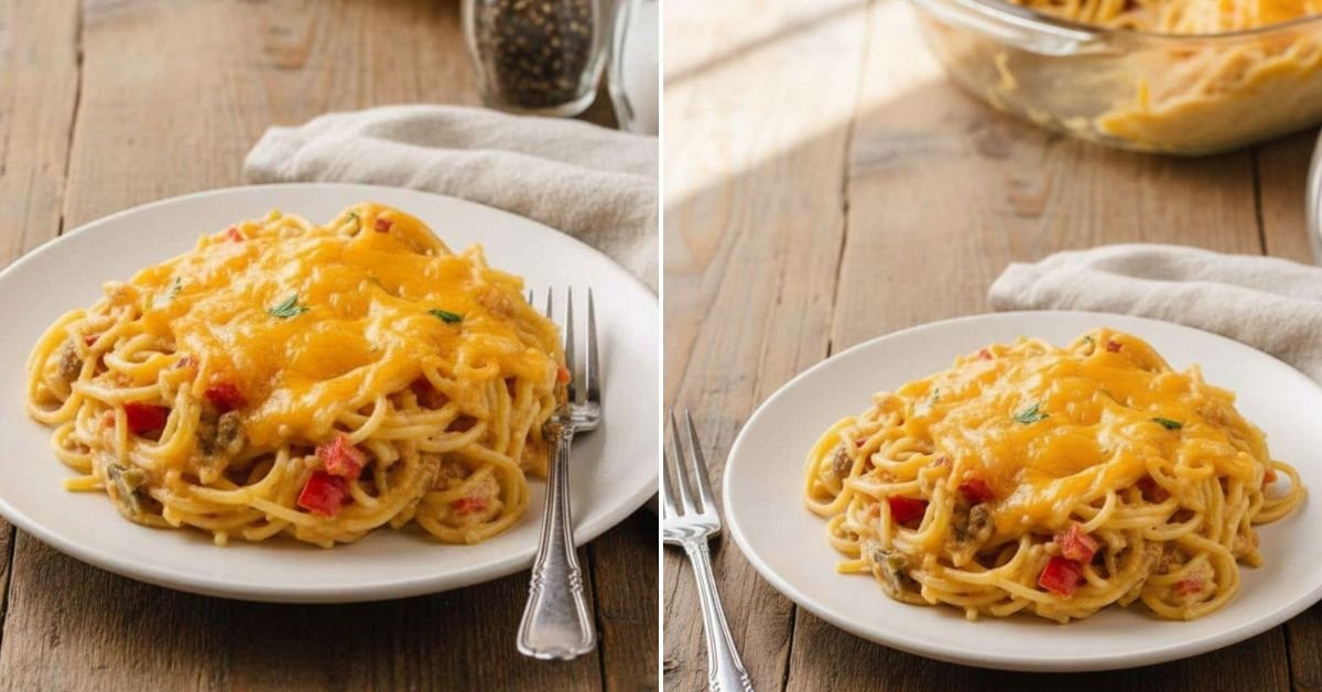 Nothing brings people together like a cheesy pasta dish, and this one hits all the right notes. With shredded chicken, sour cream, and cheddar melting into a flavorful tomato base, each forkful brings creaminess and comfort. This is where chicken spaghetti really shines—it balances savory, creamy, and just a hint of heat in every bite.