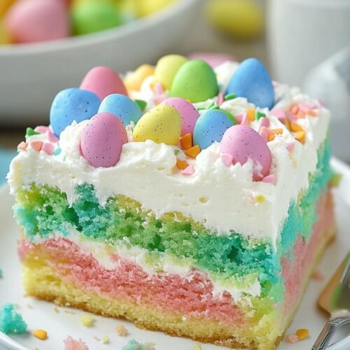 If you’re looking for a simple yet impressive dessert, this Easter Poke Cake is the answer. Not only does it come together with minimal effort, but it also delivers a show-stopping presentation. The combination of fluffy cake, rich pudding, and airy whipped topping makes every bite irresistibly delicious. Plus, it’s a great way to get creative with colors and decorations!