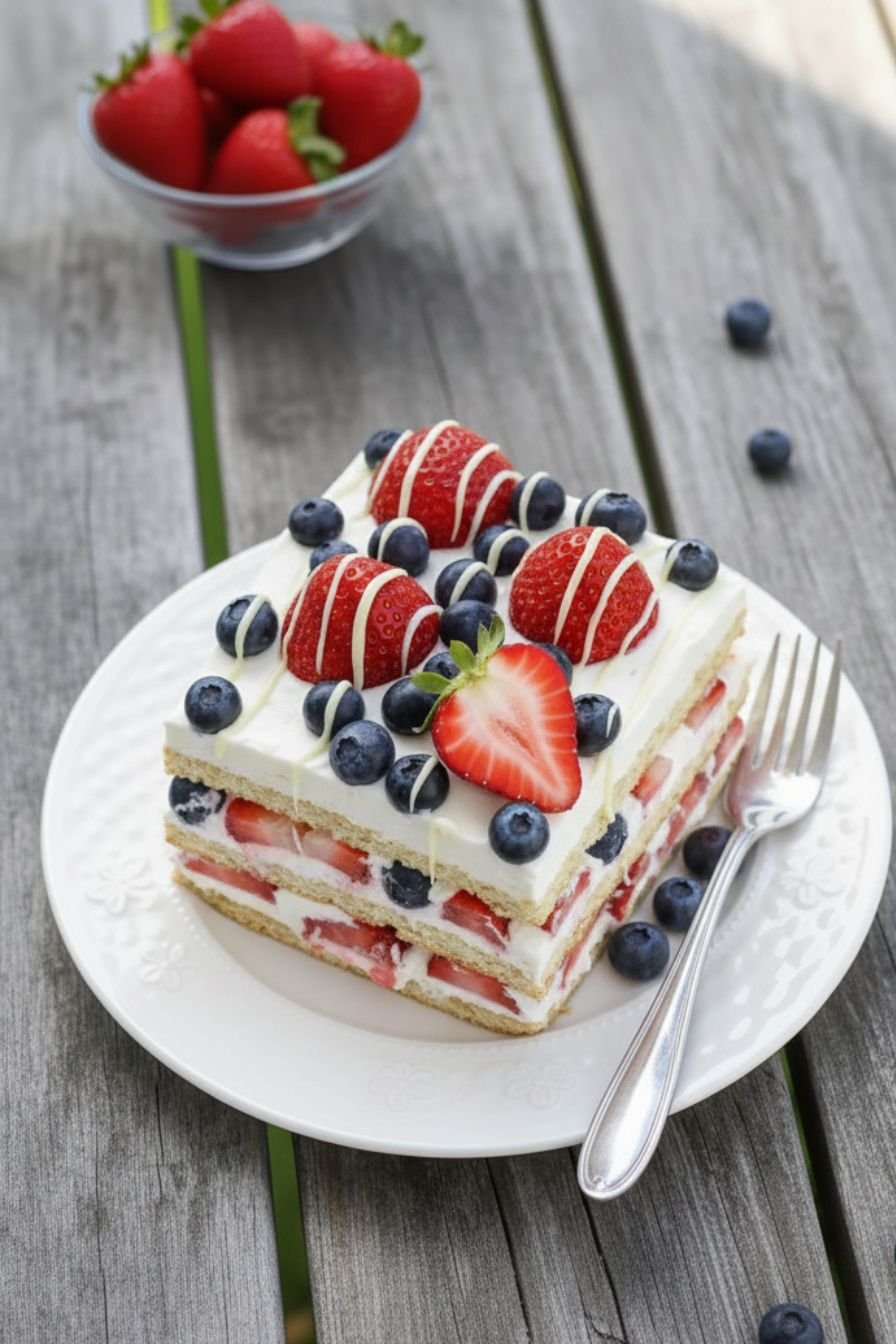 I’ve lost count of the celebrations this dessert has graced, but I remember each one fondly. Fourth of July picnics where the red, white, and blue berries looked patriotic against the creamy white layers. Mother’s Day brunches where it sat proudly alongside quiches and mimosas. Birthday parties where the birthday boy specifically requested “that berry cake with the crackers” over any bakery option. Baby showers, bridal showers, backyard barbecues, and casual weeknight dinners when we just needed something sweet. This quick and easy desserts recipe has proven itself endlessly versatile and universally beloved. What strikes me most isn’t just that people enjoy it—it’s that they remember it. Weeks later, someone will mention, “That dessert you brought—the cold one with the berries—could you send me that recipe?” There’s a reason for that. Simple, honest food made with care leaves lasting impressions. This berry icebox cake isn’t trying to be the most complicated or technical dessert in the room. It’s just trying to be delicious, beautiful, and memorable. And time after time, it succeeds.
