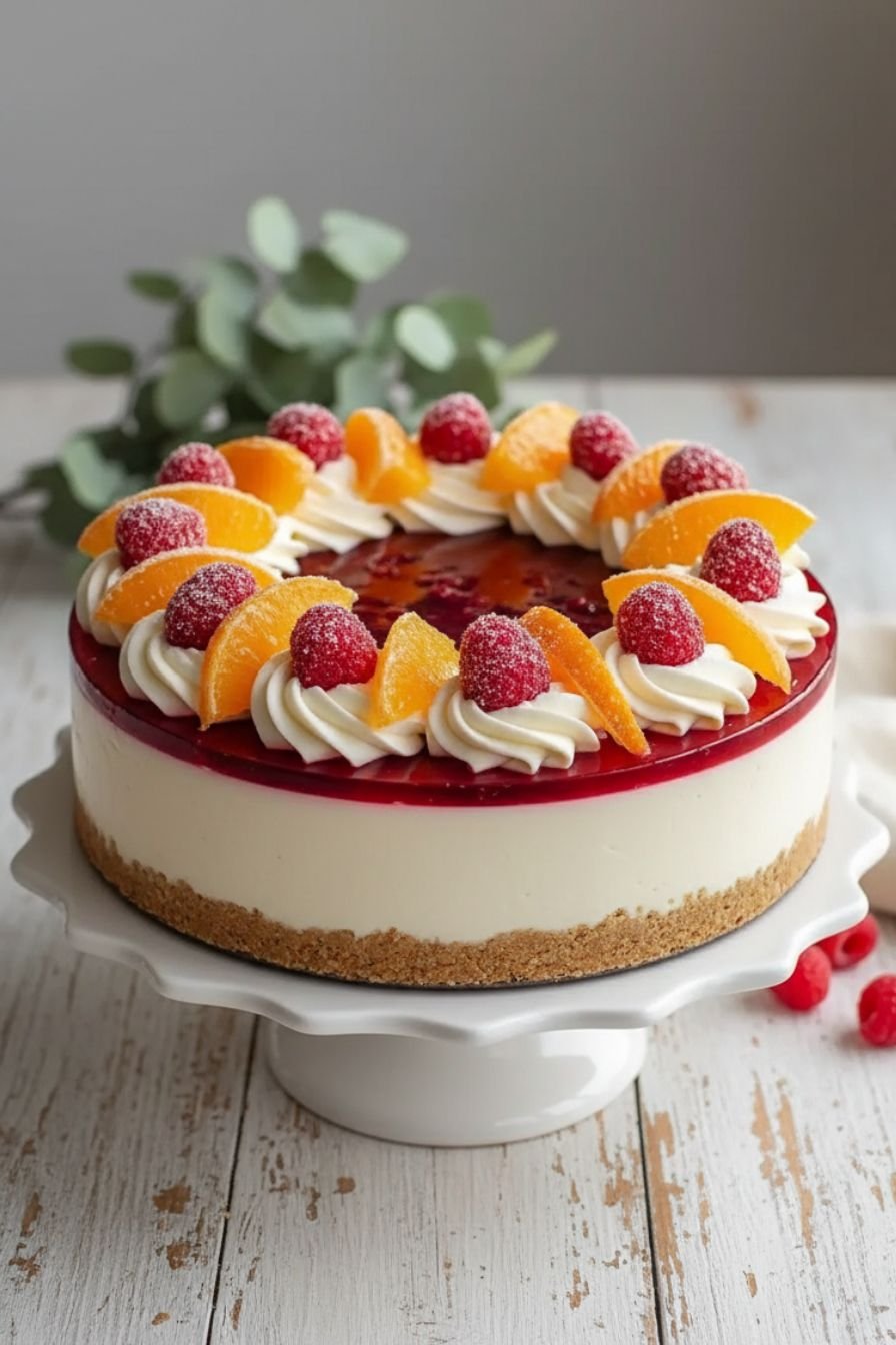 Easy No Bake Cranberry Orange Cheesecake Recipe
