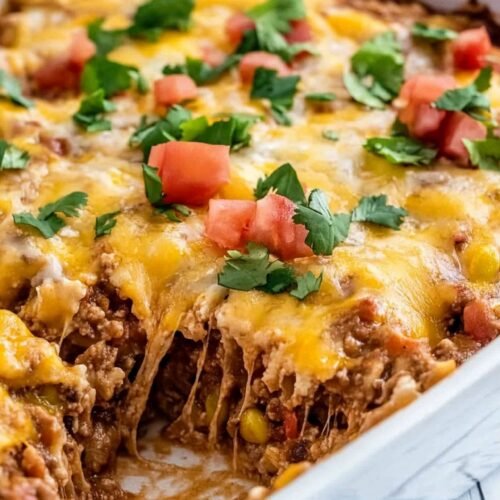 This casserole nails the balance of convenience and flavor. It’s packed with seasoned ground beef, creamy soup, and melty cheese layered with soft tortillas. If you’ve tried cheesey potatoes easy recipe options or even chicken stirfry easy recipe meals, this baked burrito version is a next-level upgrade you won’t regret.