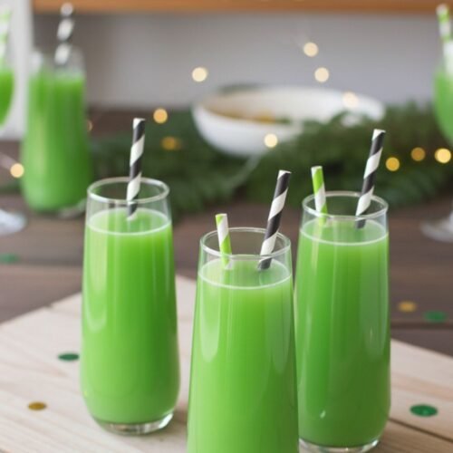 For a deeper green, use gel food coloring instead of liquid. Always add the champagne last to keep the bubbles intact. Serve immediately while cold. You can prep the green juice in advance and store it in the fridge until ready to serve.