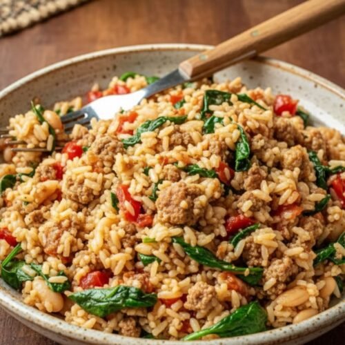 This dish proves that quick and easy recipes can still be rich in flavor. Smoked paprika and Italian seasoning give the sausage and veggies a savory kick, while chicken broth and tomatoes keep the rice moist and flavorful. You don’t need a gourmet pantry to make this – it’s one of those food receipt easy recipes that feels fancy without the fuss.
