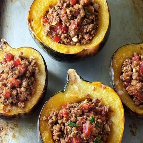 This Turkey Chili Stuffed Acorn Squash is an easy recipe perfect for fall dinners. It’s hearty, healthy, and packed with flavor. Made with lean ground turkey, beans, corn, and warm spices, this comforting meal is great for family dinners or meal prep. The combination of sweet roasted acorn squash and savory chili makes this a favorite among quick and easy recipes for dinner.