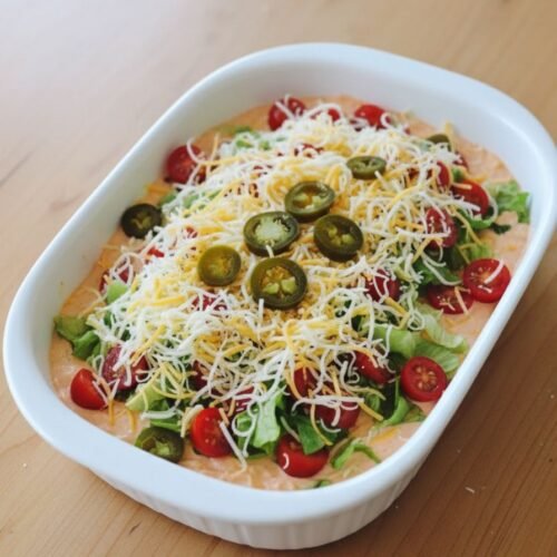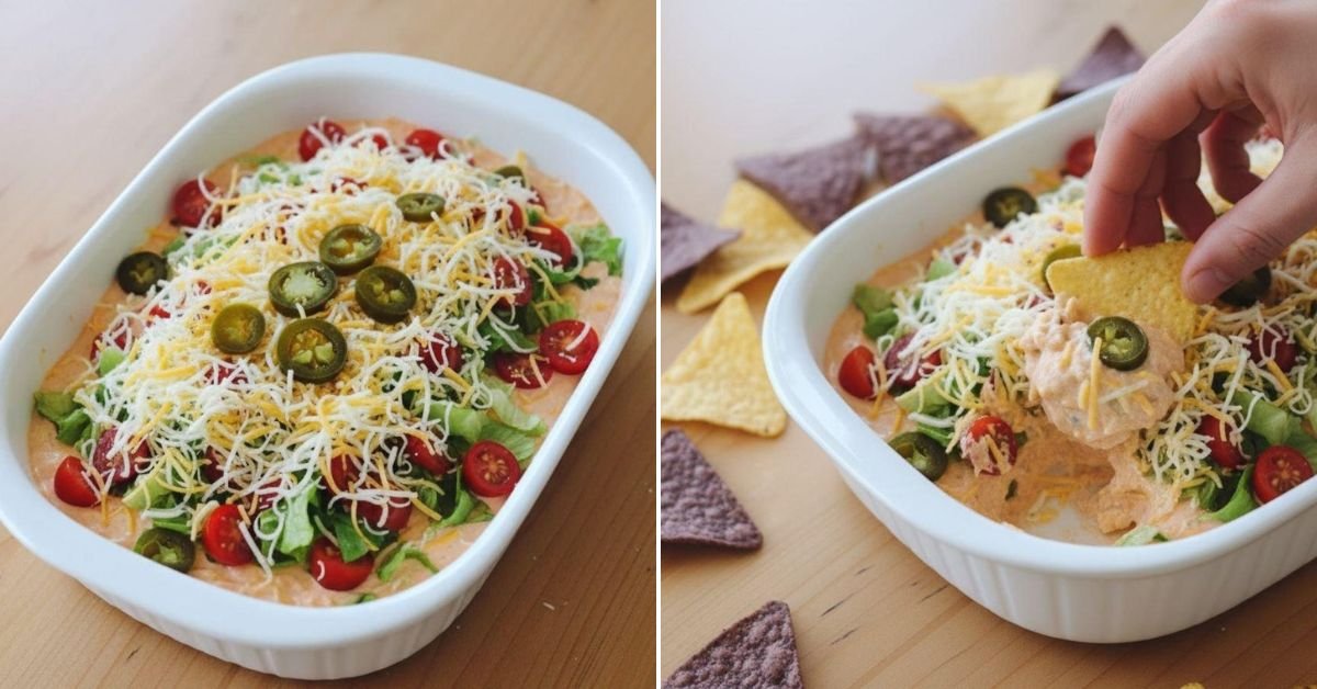 This dip has it all—seasoned cream cheese, zesty salsa, fresh veggies, olives, and a generous sprinkle of cheese. It’s the ultimate cold dip recipe for any gathering. The contrast of creamy and crunchy is what makes this recipe so special, and the layered dip format ensures everyone gets a bit of everything.