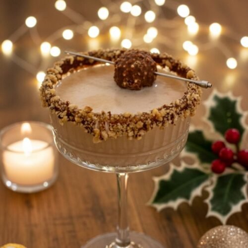 This versatile cocktail fits more scenarios than you might think. Serve it as a grand finale to a dinner party, pair it with a cheese plate for a festive happy hour, or enjoy it as a cozy nightcap. For larger gatherings, you can easily multiply the recipe and batch-mix the liquids in a pitcher ahead of time, then shake individual servings with ice and the Ferrero Rocher when ready to serve. It’s one of those easy dessert recipes for beginners that looks like you hired a mixologist.
