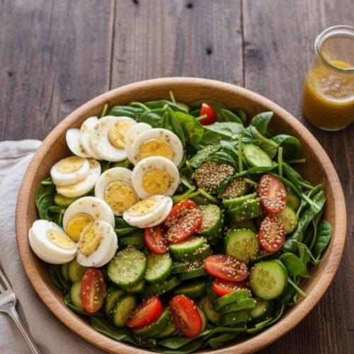 This healthy spinach salad with eggs and avocado is a fresh, quick, and nutrient-packed dish. Ideal for lunch or a light dinner, it’s easy to make and fits perfectly into a healthy lifestyle. It’s vegetarian, versatile, and perfect for meal prep or when you’re short on time.