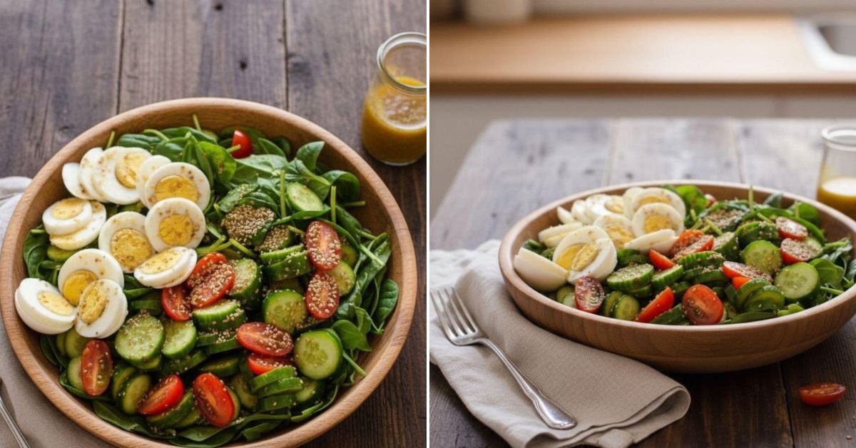 One of the reasons this salad stands out is its vibrant ingredient list. Think iron-rich spinach, crunchy cucumbers, toasted almonds, and a creamy, zesty homemade dressing. The richness of the eggs and avocado balances beautifully with the tartness of lemon juice. It’s an easy lunch idea that fits the bill for quick and easy recipes without skimping on taste or texture.