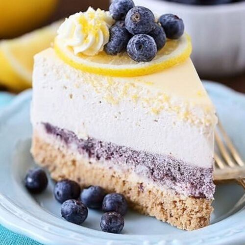 Lemon Blueberry Mousse Cake with Buttery Shortbread Crust