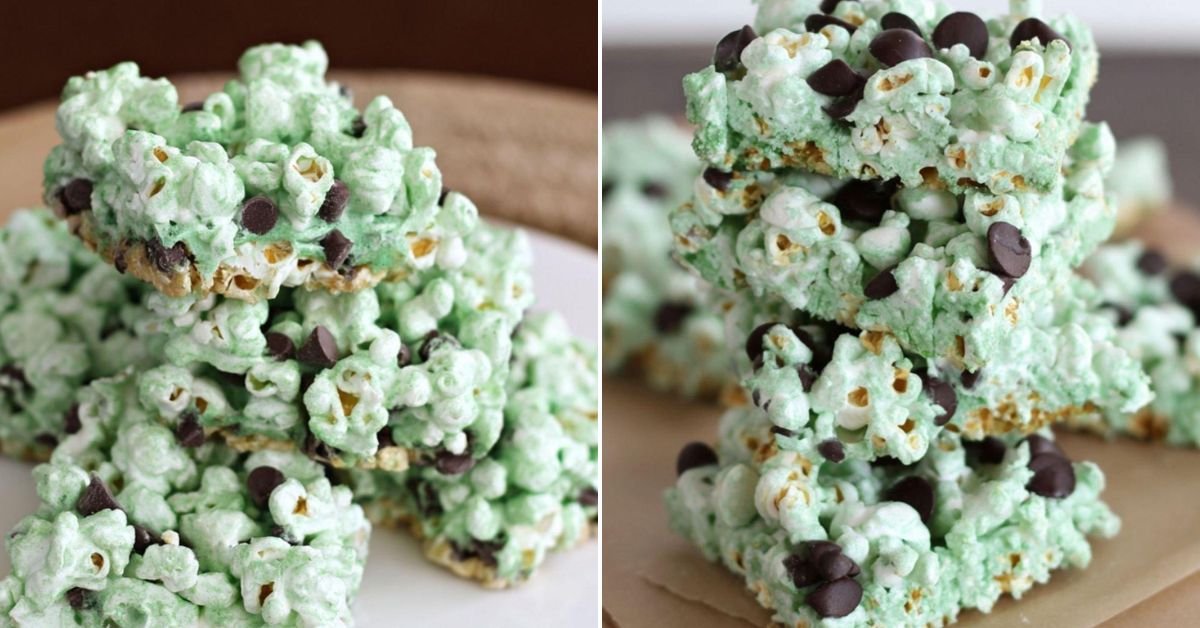 Mint Chocolate Chip Popcorn Bars – Sweet Easy Recipes