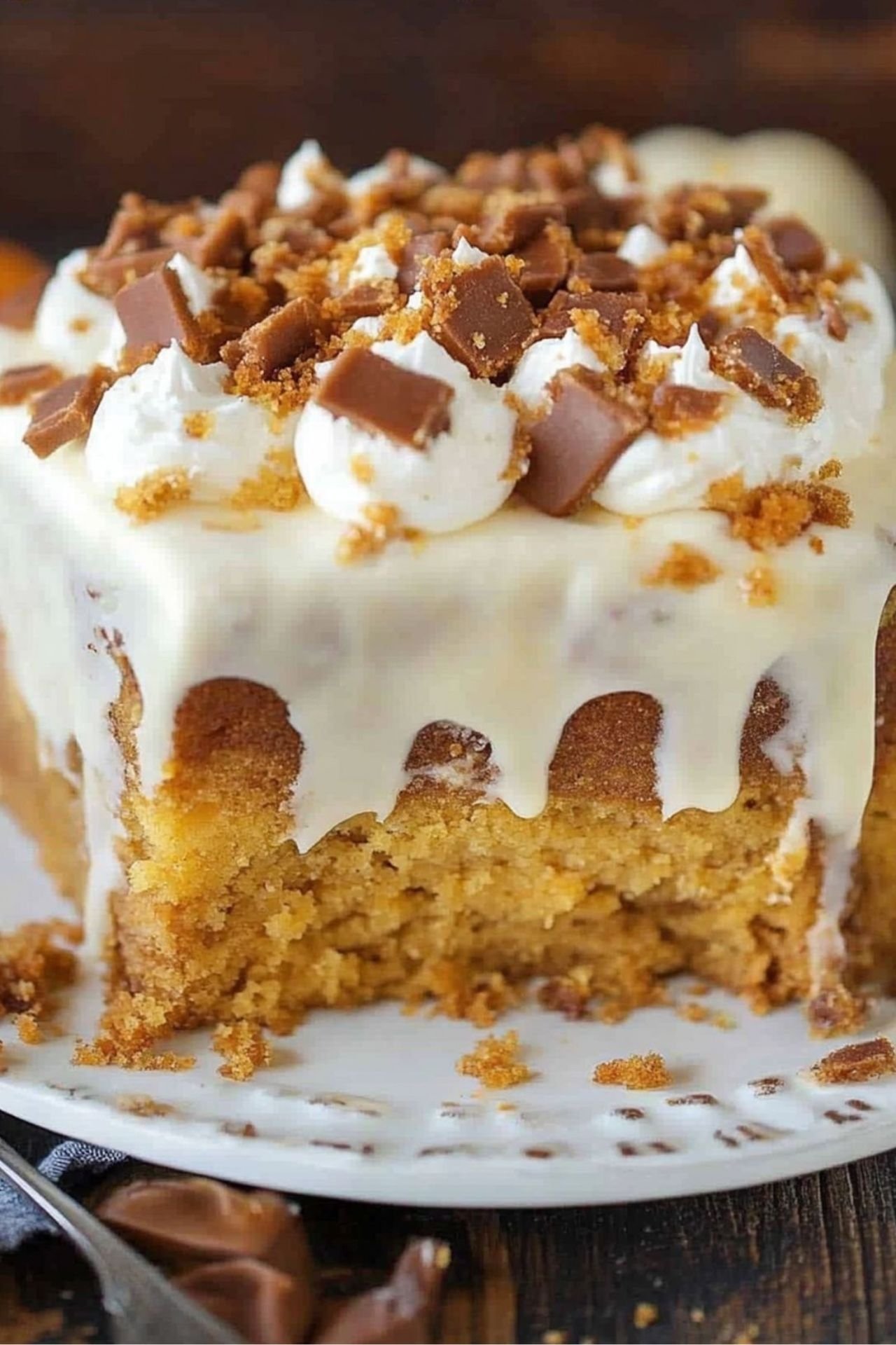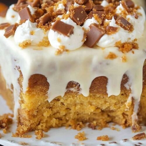 Want to elevate your cake even more? Add a sprinkle of cinnamon to the cream cheese topping, or try toasted pecans for extra crunch. You can even swap the yellow cake mix for spice cake for a deeper autumn flavor. Whether you’re planning dinner recipes, potluck sweets, or fall baking fun, this one is an easy winner.