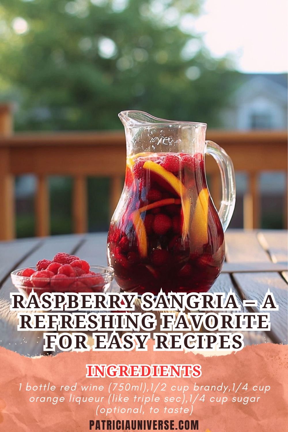 For best results, let your sangria chill in the fridge for a few hours before serving. This gives the fruit time to infuse the drink with even more flavor. If you’re looking for easy recipes that make you feel like a mixology wizard, this one’s a gem. Don’t forget to garnish each glass with extra raspberries or orange slices for that finishing touch. Cheers from Patricia at Patricia Universe!