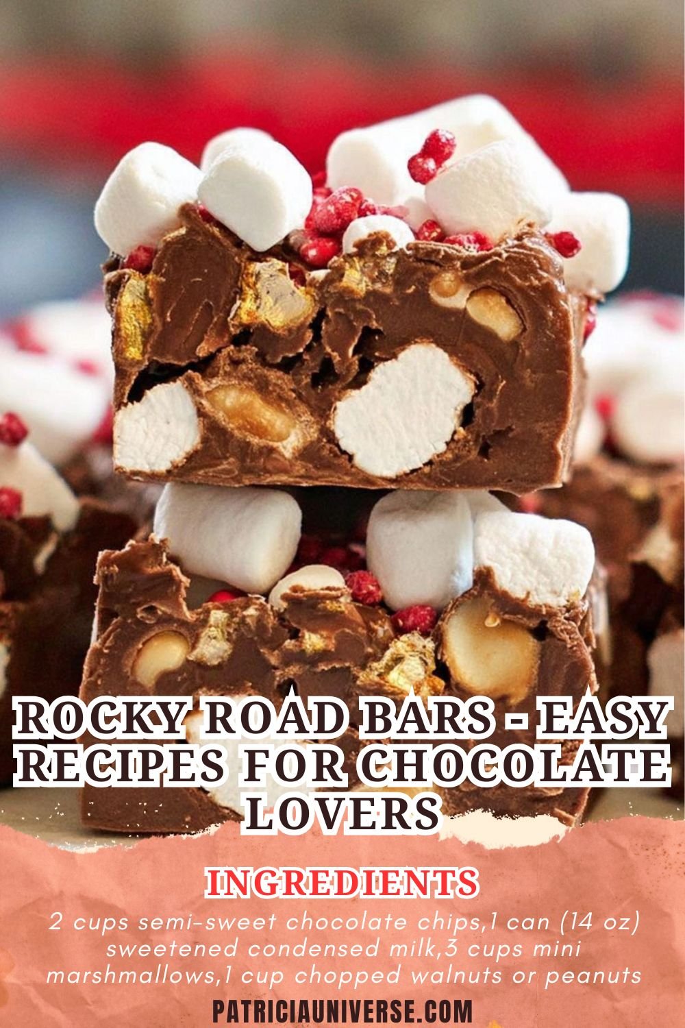 Rocky Road Bars are a no-bake delight perfect for busy days. With just a few ingredients, these easy recipes combine rich chocolate, fluffy marshmallows, and crunchy nuts into a treat that works for both casual snacks and elegant gatherings.