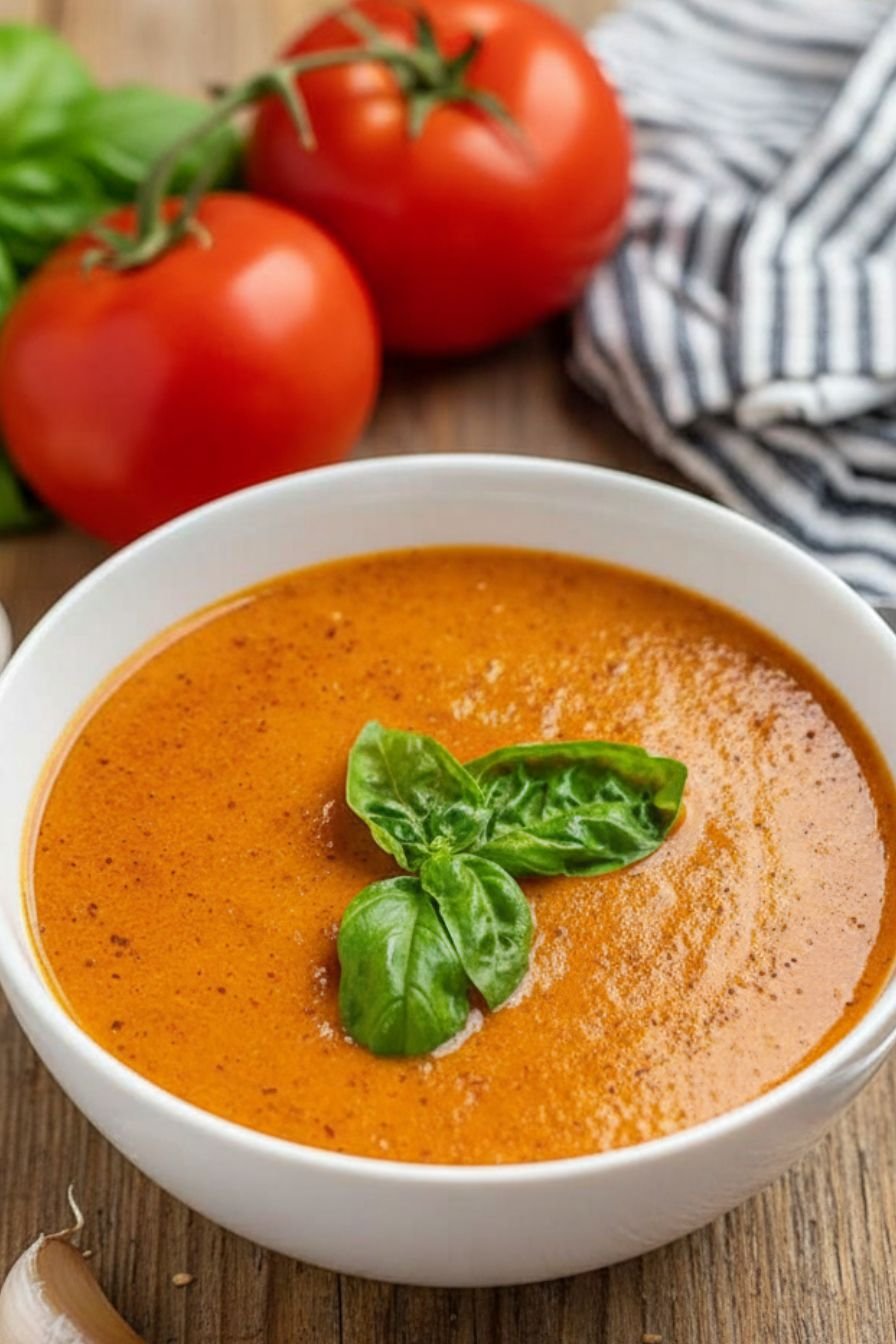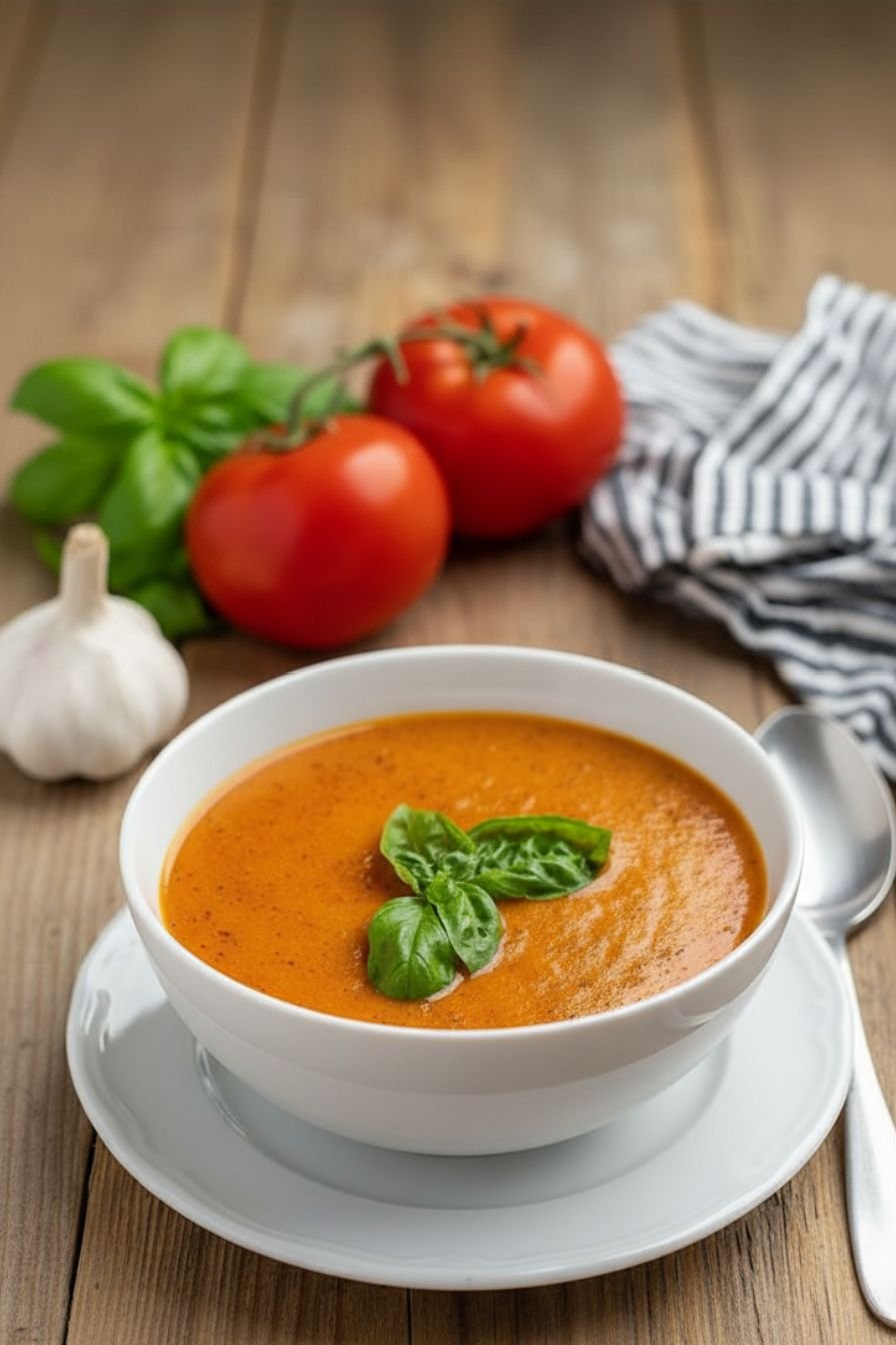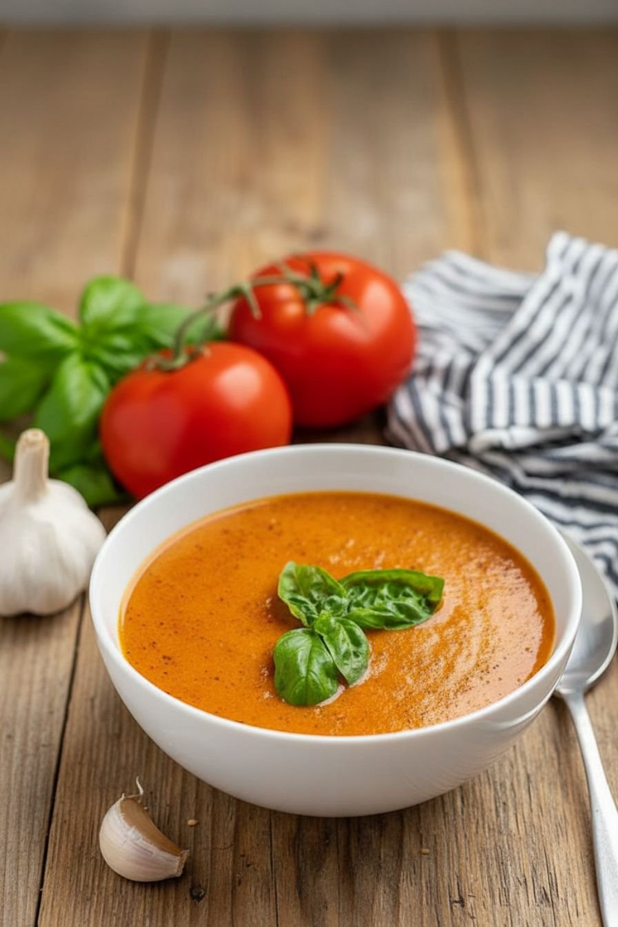 This easy tomato basil soup is creamy, comforting, and comes together in under an hour. A perfect quick and easy dinner for busy weeknights.