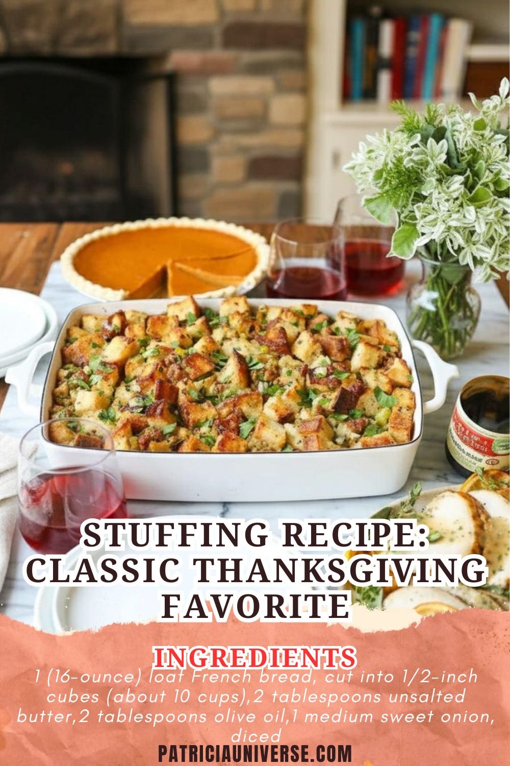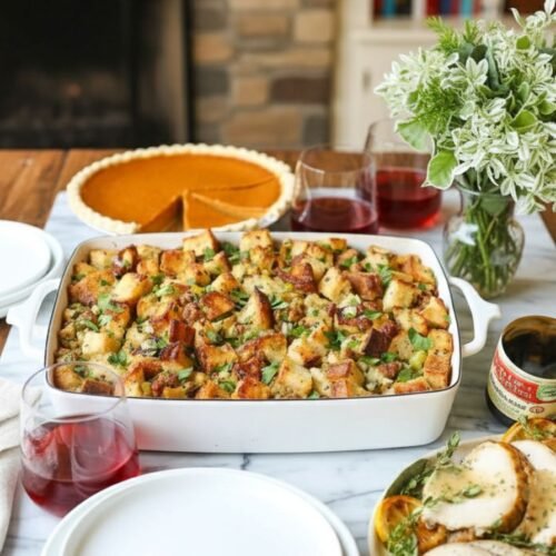Every family feast deserves a hero side dish, and for me, it’s always this classic stuffing recipe. On Patricia Universe, I wanted to share a version that feels just like home—cozy, savory, and foolproof. This recipe wraps up everything you love about traditional Thanksgiving recipes in one warm, satisfying bite. From the toasty French bread cubes to the blend of fresh herbs, it hits all the right holiday notes. Whether you’re hosting the entire family or bringing a dish to share, this stuffing recipe is your golden ticket to compliments.