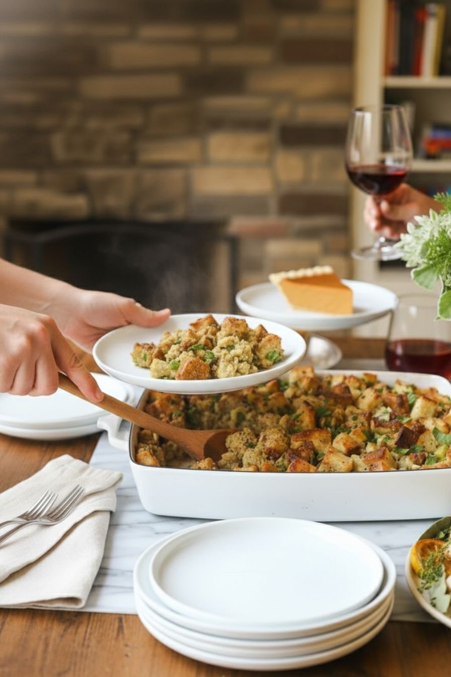 One of the best parts of this stuffing recipe is its flexibility. Add in cooked sausage for extra richness, swap out chicken stock for veggie broth to keep it vegetarian, or toss in dried cranberries for a sweet-tart contrast. It adapts beautifully to your family’s taste and makes a perfect addition to your collection of holiday side dishes.