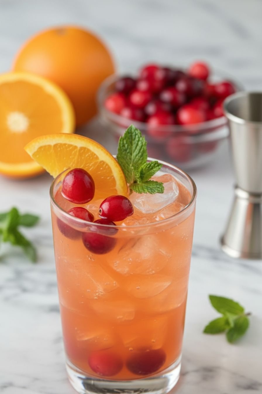 - Garnish with an orange slice or cherry and serve immediately.