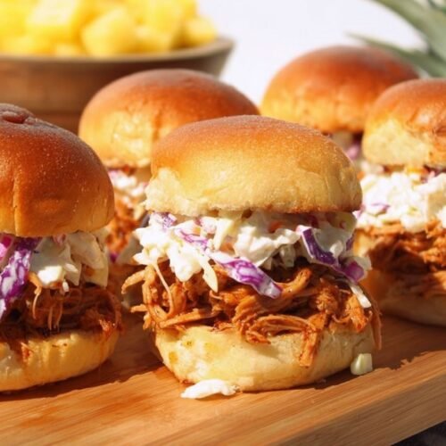Shredded chicken soaks up the sweet and tangy teriyaki glaze, while juicy pineapple tidbits add a pop of brightness. The Hawaiian rolls give these sliders a pillowy-soft bite that contrasts beautifully with the crunchy coleslaw. Easy recipes like this prove you don’t need complicated steps to make something crave-worthy.